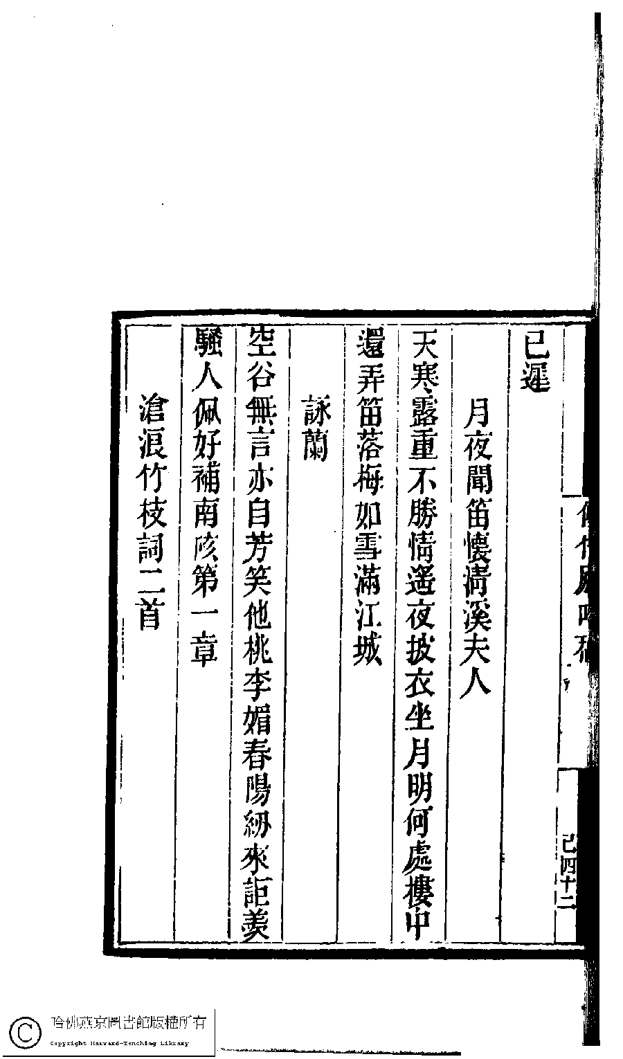 | (PRINT FRIENDLY VERSION) 國朝閨閣詩鈔﹕一百種一百卷(清蔡殿齊輯) : 修竹廬吟稿﹕一卷。清道光二十四年(1844)刻本。 ![]() Page : 6.42b | click for larger image | Back |
