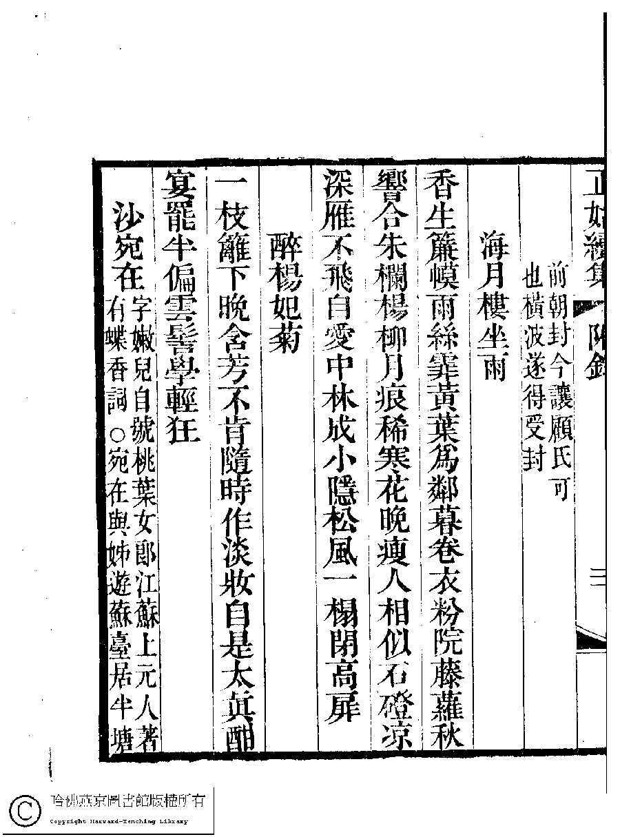 | (PRINT FRIENDLY VERSION) 國朝閨秀正始續集﹕十卷﹐附錄﹕一卷﹐補遺﹕一卷﹐輓詞﹕一卷(清惲珠輯)。清道光十六年(1836)紅香館刻本。 ![]() Page : 附錄.20b | click for larger image | Back |