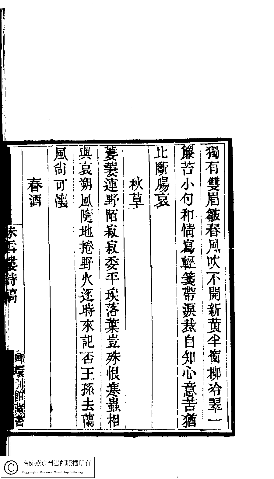 | (PRINT FRIENDLY VERSION) 國朝閨閣詩鈔﹕一百種一百卷(清蔡殿齊輯) : 味雪樓詩稿﹕一卷。清道光二十四年(1844)刻本。 ![]() Page : 6.36b | click for larger image | 國朝閨閣詩鈔﹕一百種一百卷(清蔡殿齊輯) : 味雪樓詩稿﹕一卷。清道光二十四年(1844)刻本。![]() Page : 6.36a | click for larger image | Back |