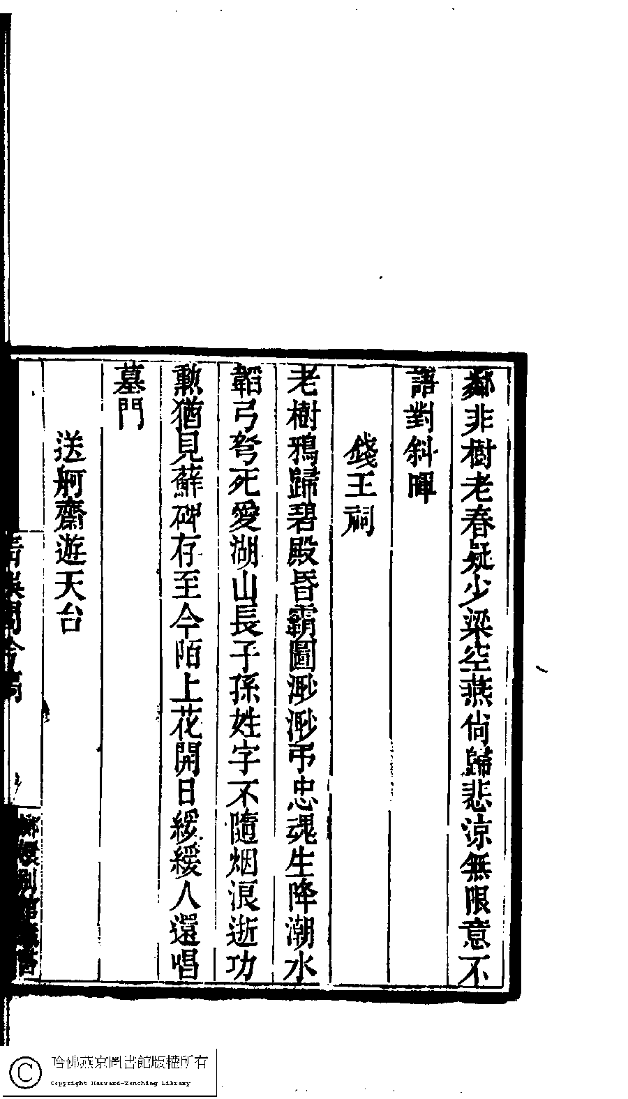 | (PRINT FRIENDLY VERSION) 國朝閨閣詩鈔﹕一百種一百卷(清蔡殿齊輯) : 清娛閣吟稿﹕一卷。清道光二十四年(1844)刻本。 ![]() Page : 6.53a | click for larger image | 國朝閨閣詩鈔﹕一百種一百卷(清蔡殿齊輯) : 清娛閣吟稿﹕一卷。清道光二十四年(1844)刻本。![]() Page : 6.52b | click for larger image | Back |