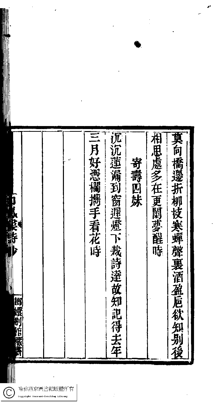 | (PRINT FRIENDLY VERSION) 國朝閨閣詩鈔﹕一百種一百卷(清蔡殿齊輯) : 白鳳樓詩鈔﹕一卷。清道光二十四年(1844)刻本。 ![]() Page : 7.10a | click for larger image | 國朝閨閣詩鈔﹕一百種一百卷(清蔡殿齊輯) : 白鳳樓詩鈔﹕一卷。清道光二十四年(1844)刻本。![]() Page : 7.9b | click for larger image | Back |