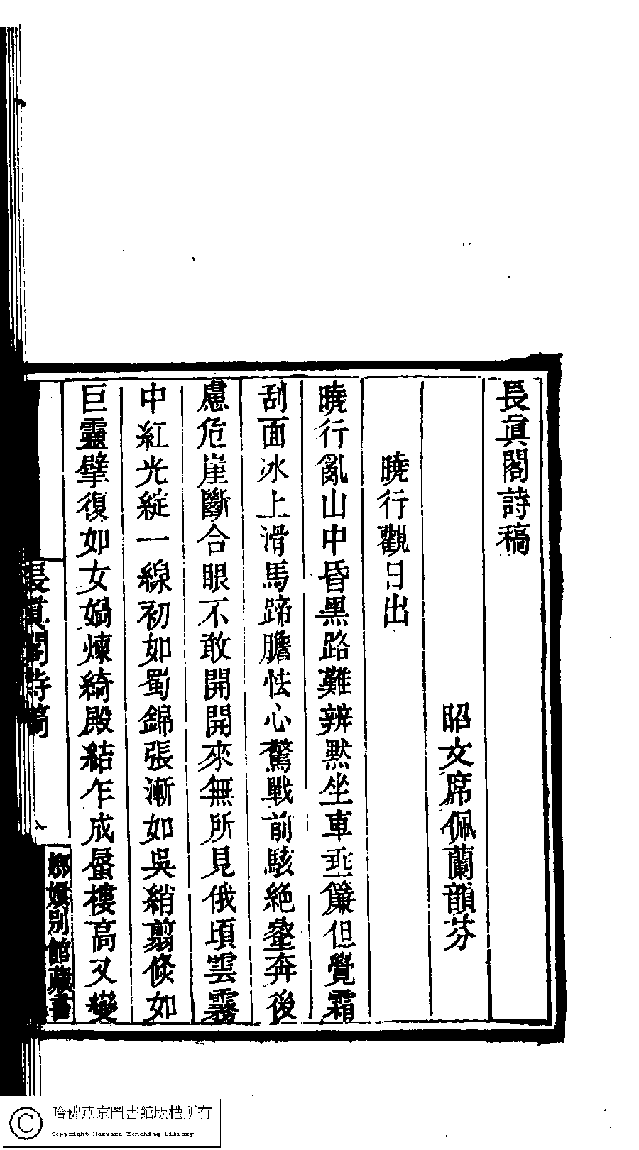 | (PRINT FRIENDLY VERSION) 國朝閨閣詩鈔﹕一百種一百卷(清蔡殿齊輯) : 長真閣詩稿﹕一卷。清道光二十四年(1844)刻本。 ![]() Page : 7.12b | click for larger image | 國朝閨閣詩鈔﹕一百種一百卷(清蔡殿齊輯) : 長真閣詩稿﹕一卷。清道光二十四年(1844)刻本。![]() Page : 7.12a | click for larger image | Back |