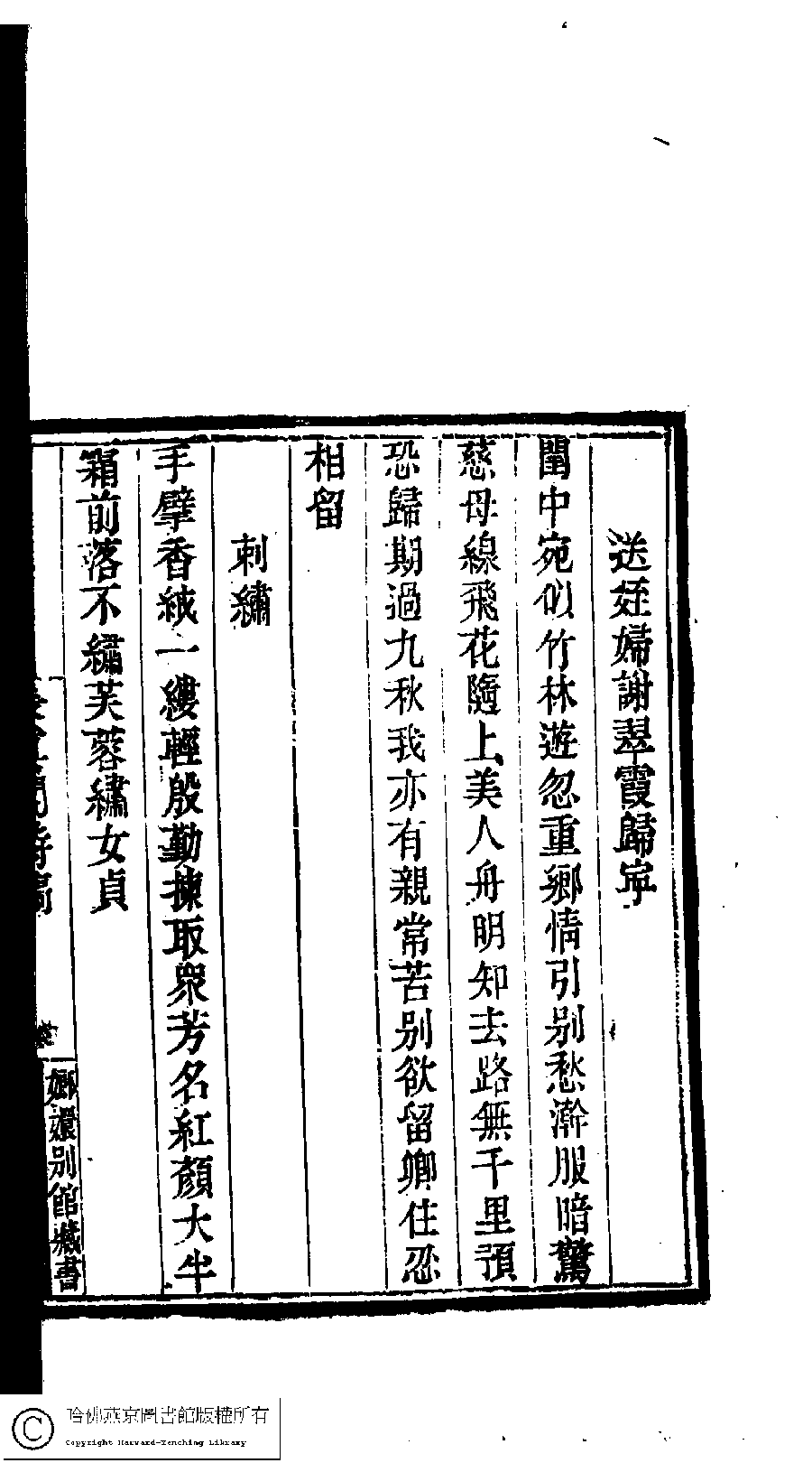 | (PRINT FRIENDLY VERSION) 國朝閨閣詩鈔﹕一百種一百卷(清蔡殿齊輯) : 長真閣詩稿﹕一卷。清道光二十四年(1844)刻本。 ![]() Page : 7.16a | click for larger image | Back |
