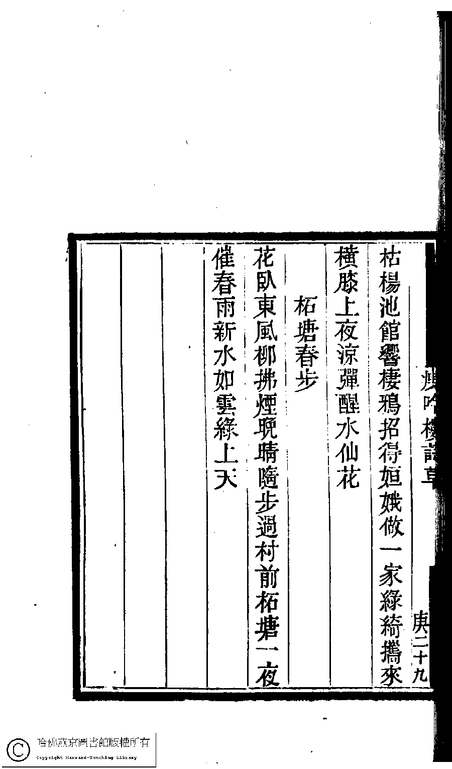 | (PRINT FRIENDLY VERSION) 國朝閨閣詩鈔﹕一百種一百卷(清蔡殿齊輯) : 瘦吟樓詩草﹕一卷。清道光二十四年(1844)刻本。 ![]() Page : 7.29b | click for larger image | Back |