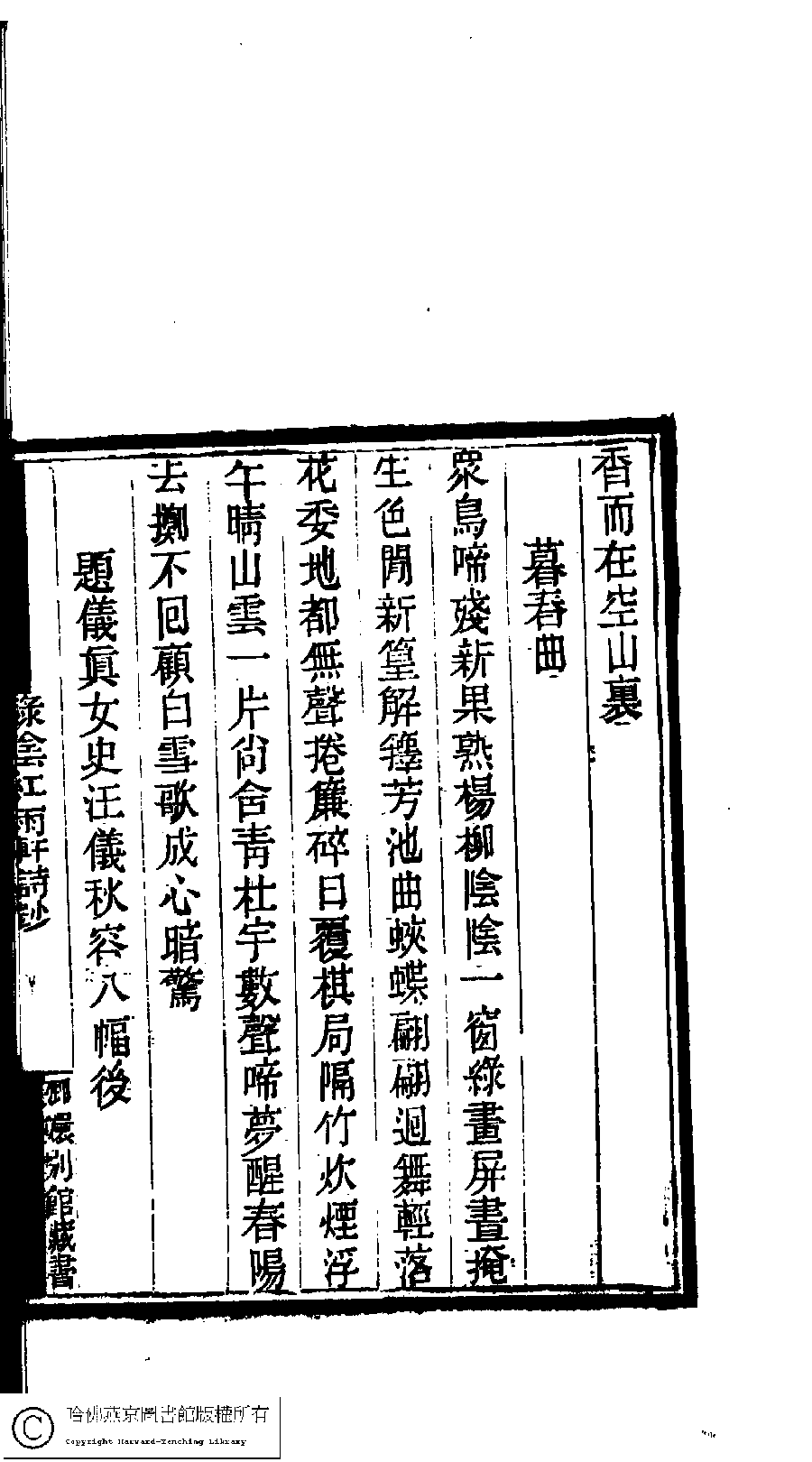 | Appears in: Guo chao gui ge shi chao: 100 zhong 100 juan (edited by Cai Dianqi, Qing dynasty): Lü yin hong yu xuan shi chao: 1 juan |