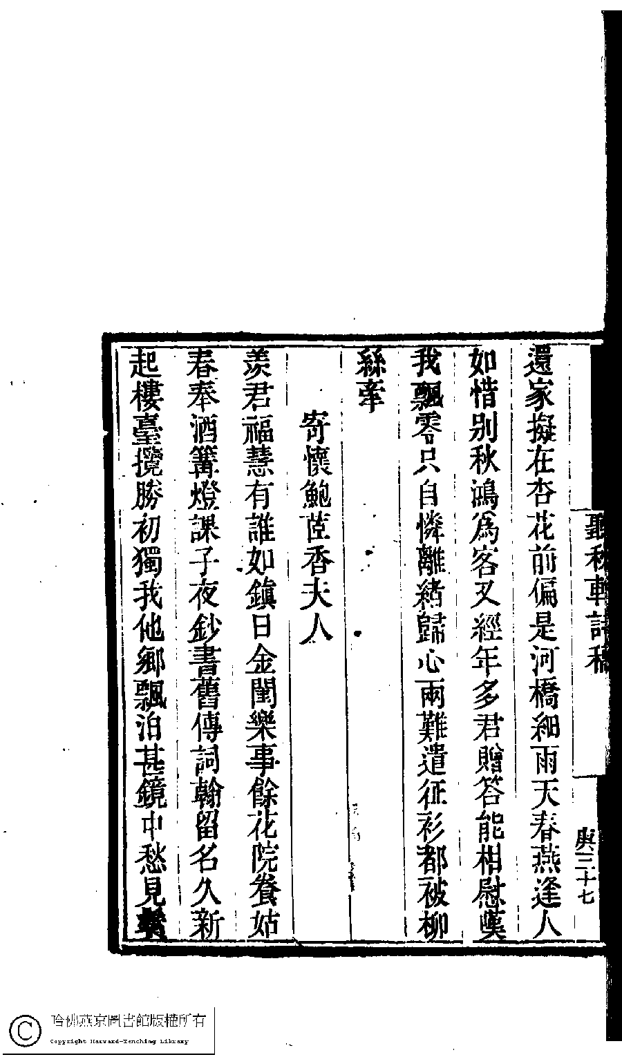 | (PRINT FRIENDLY VERSION) 國朝閨閣詩鈔﹕一百種一百卷(清蔡殿齊輯) : 聽秋軒詩稿﹕一卷。清道光二十四年(1844)刻本。 ![]() Page : 7.37b | click for larger image | 國朝閨閣詩鈔﹕一百種一百卷(清蔡殿齊輯) : 聽秋軒詩稿﹕一卷。清道光二十四年(1844)刻本。![]() Page : 7.37a | click for larger image | Back |
