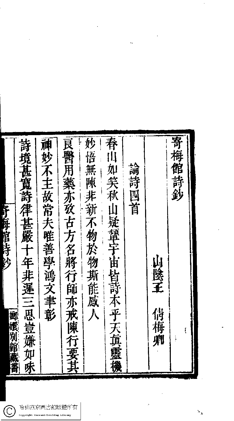 | Appears in: Guo chao gui ge shi chao: 100 zhong 100 juan (edited by Cai Dianqi, Qing dynasty): Ji mei guan shi chao: 1 juan |