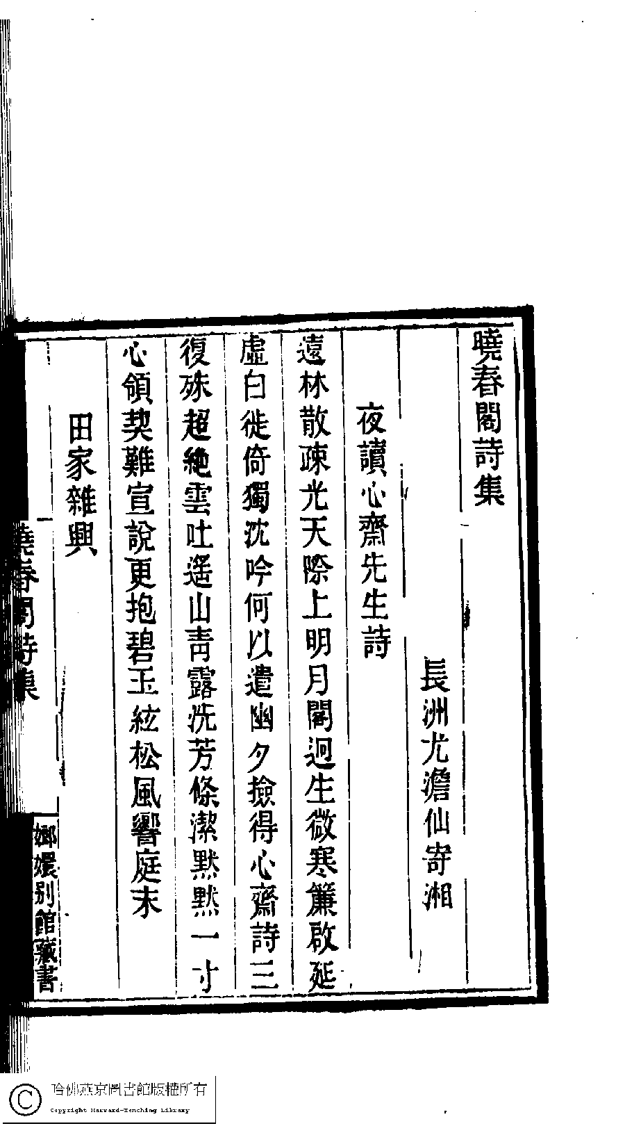 | Appears in: Guo chao gui ge shi chao: 100 zhong 100 juan (edited by Cai Dianqi, Qing dynasty): Xiao chun ge shi ji: 1 juan |