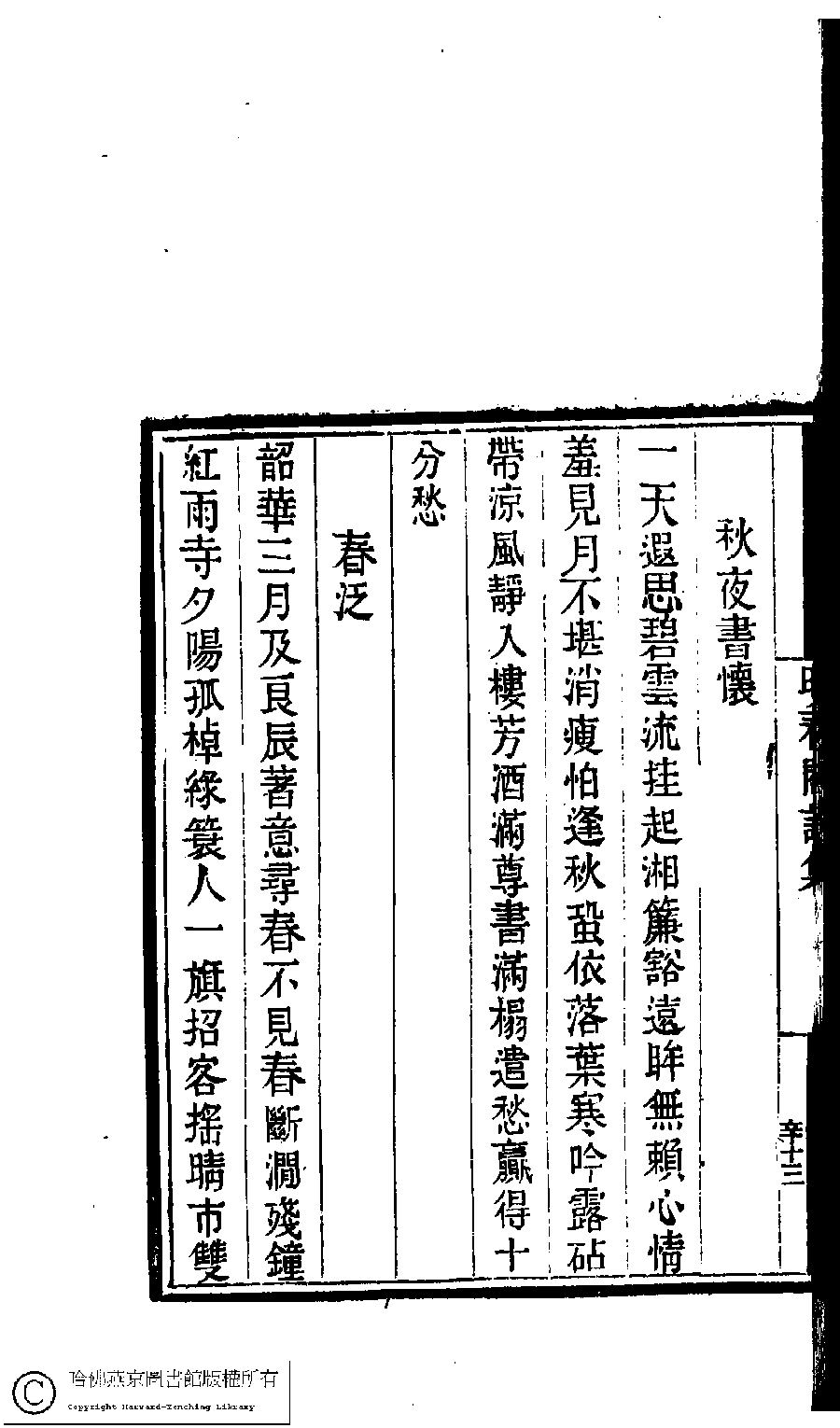 | Appears in: Guo chao gui ge shi chao: 100 zhong 100 juan (edited by Cai Dianqi, Qing dynasty): Xiao chun ge shi ji: 1 juan |