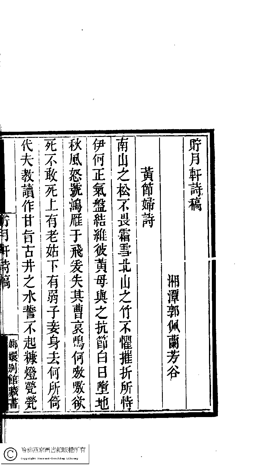 | (PRINT FRIENDLY VERSION) 國朝閨閣詩鈔﹕一百種一百卷(清蔡殿齊輯) : 貯月軒詩稿﹕一卷。清道光二十四年(1844)刻本。 ![]() Page : 8.22b | click for larger image | 國朝閨閣詩鈔﹕一百種一百卷(清蔡殿齊輯) : 貯月軒詩稿﹕一卷。清道光二十四年(1844)刻本。![]() Page : 8.22a | click for larger image | Back |