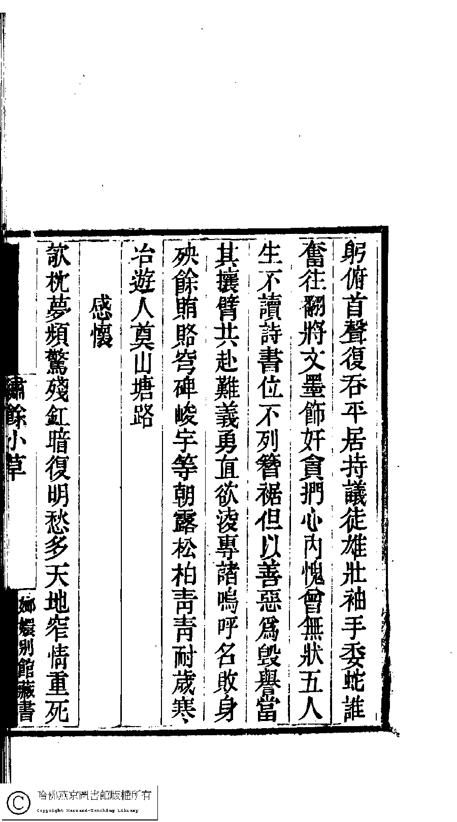 | (PRINT FRIENDLY VERSION) 國朝閨閣詩鈔﹕一百種一百卷(清蔡殿齊輯) : 繡餘小草﹕一卷。清道光二十四年(1844)刻本。 ![]() Page : 8.29a | click for larger image | 國朝閨閣詩鈔﹕一百種一百卷(清蔡殿齊輯) : 繡餘小草﹕一卷。清道光二十四年(1844)刻本。![]() Page : 8.28b | click for larger image | Back |