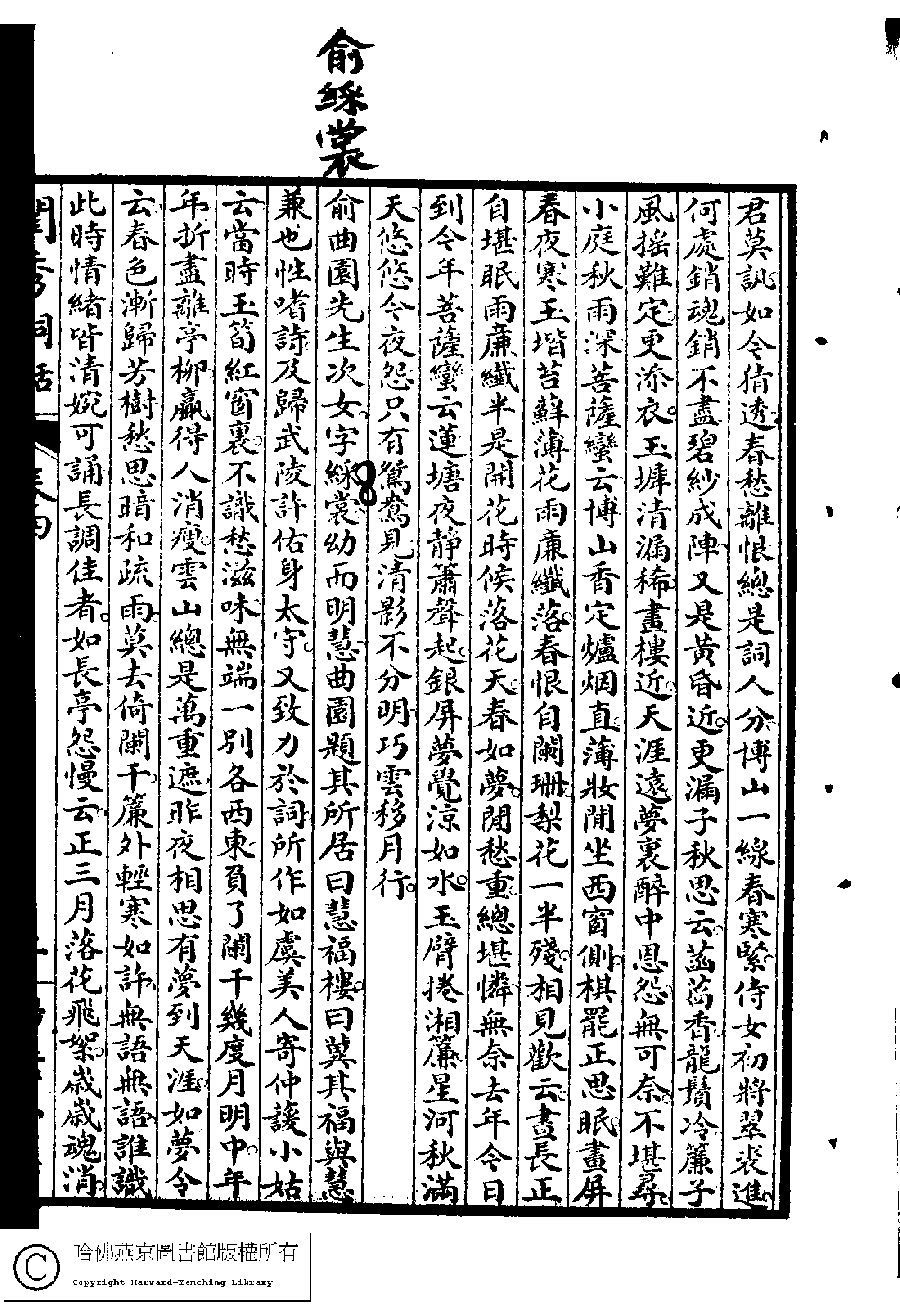 | (PRINT FRIENDLY VERSION) 閨秀詞話﹕四卷(雷瑨、雷瑊輯)。民國五年(1916)掃葉山房石印本 ![]() Page : 4.2a | click for larger image | 閨秀詞話﹕四卷(雷瑨、雷瑊輯)。民國五年(1916)掃葉山房石印本![]() Page : 4.1b | click for larger image | Back |