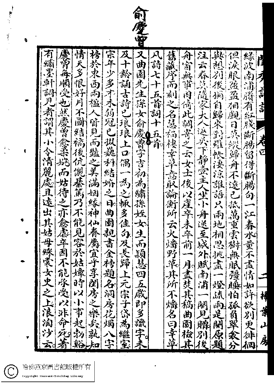 | (PRINT FRIENDLY VERSION) 閨秀詞話﹕四卷(雷瑨、雷瑊輯)。民國五年(1916)掃葉山房石印本 ![]() Page : 4.3a | click for larger image | 閨秀詞話﹕四卷(雷瑨、雷瑊輯)。民國五年(1916)掃葉山房石印本![]() Page : 4.2b | click for larger image | Back |