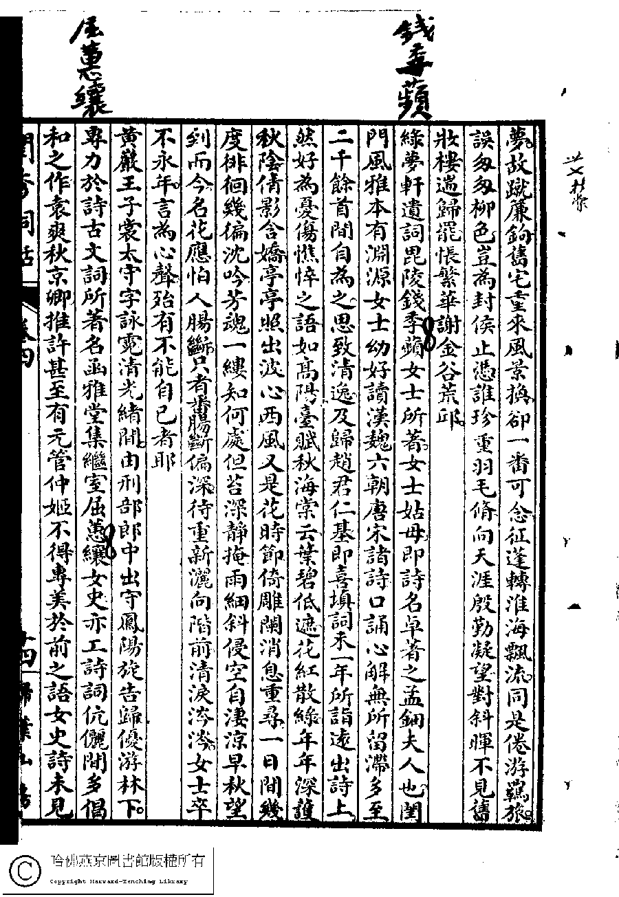 | (PRINT FRIENDLY VERSION) 閨秀詞話﹕四卷(雷瑨、雷瑊輯)。民國五年(1916)掃葉山房石印本 ![]() Page : 4.14a | click for larger image | 閨秀詞話﹕四卷(雷瑨、雷瑊輯)。民國五年(1916)掃葉山房石印本![]() Page : 4.13b | click for larger image | Back |