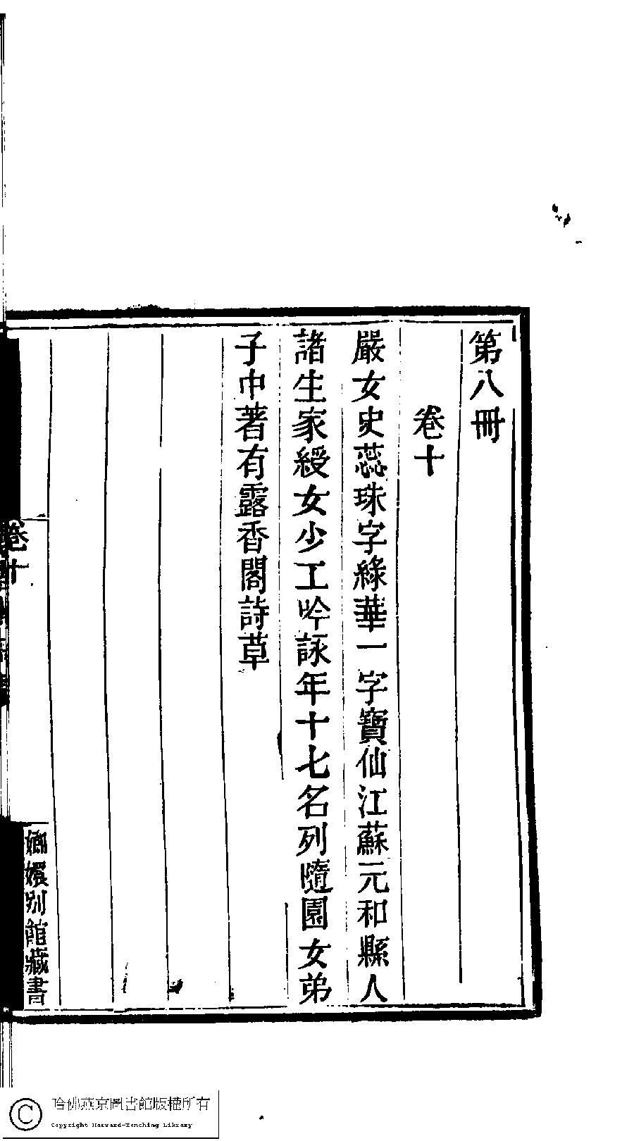 | (PRINT FRIENDLY VERSION) 國朝閨閣詩鈔﹕一百種一百卷(清蔡殿齊輯) : 露香閣詩草﹕一卷。清道光二十四年(1844)刻本。 ![]() Page : 8.31b | click for larger image | 國朝閨閣詩鈔﹕一百種一百卷(清蔡殿齊輯) : 露香閣詩草﹕一卷。清道光二十四年(1844)刻本。![]() Page : 8.31a | click for larger image | Back |