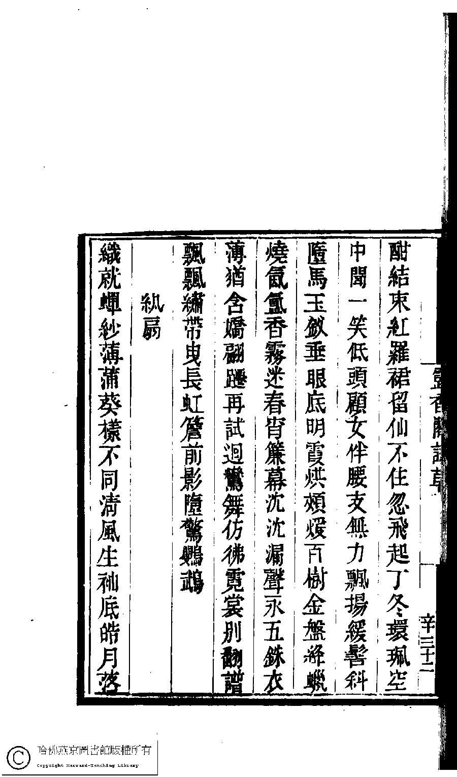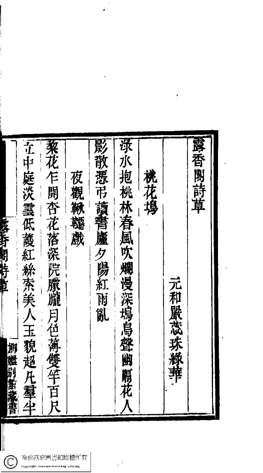 | (PRINT FRIENDLY VERSION) 國朝閨閣詩鈔﹕一百種一百卷(清蔡殿齊輯) : 露香閣詩草﹕一卷。清道光二十四年(1844)刻本。 ![]() Page : 8.32b | click for larger image | 國朝閨閣詩鈔﹕一百種一百卷(清蔡殿齊輯) : 露香閣詩草﹕一卷。清道光二十四年(1844)刻本。![]() Page : 8.32a | click for larger image | Back |