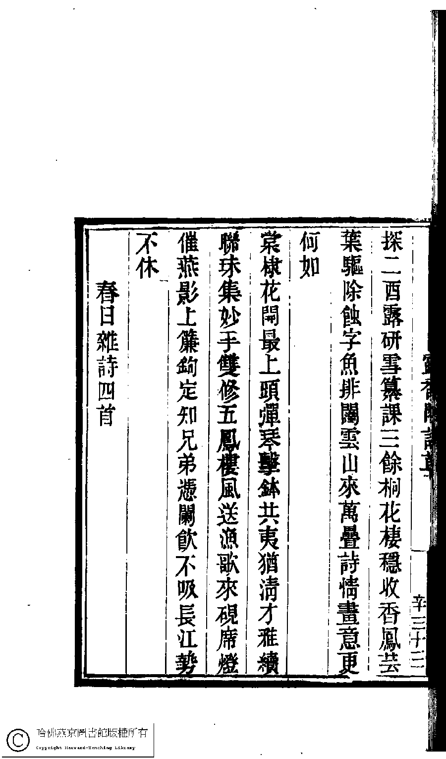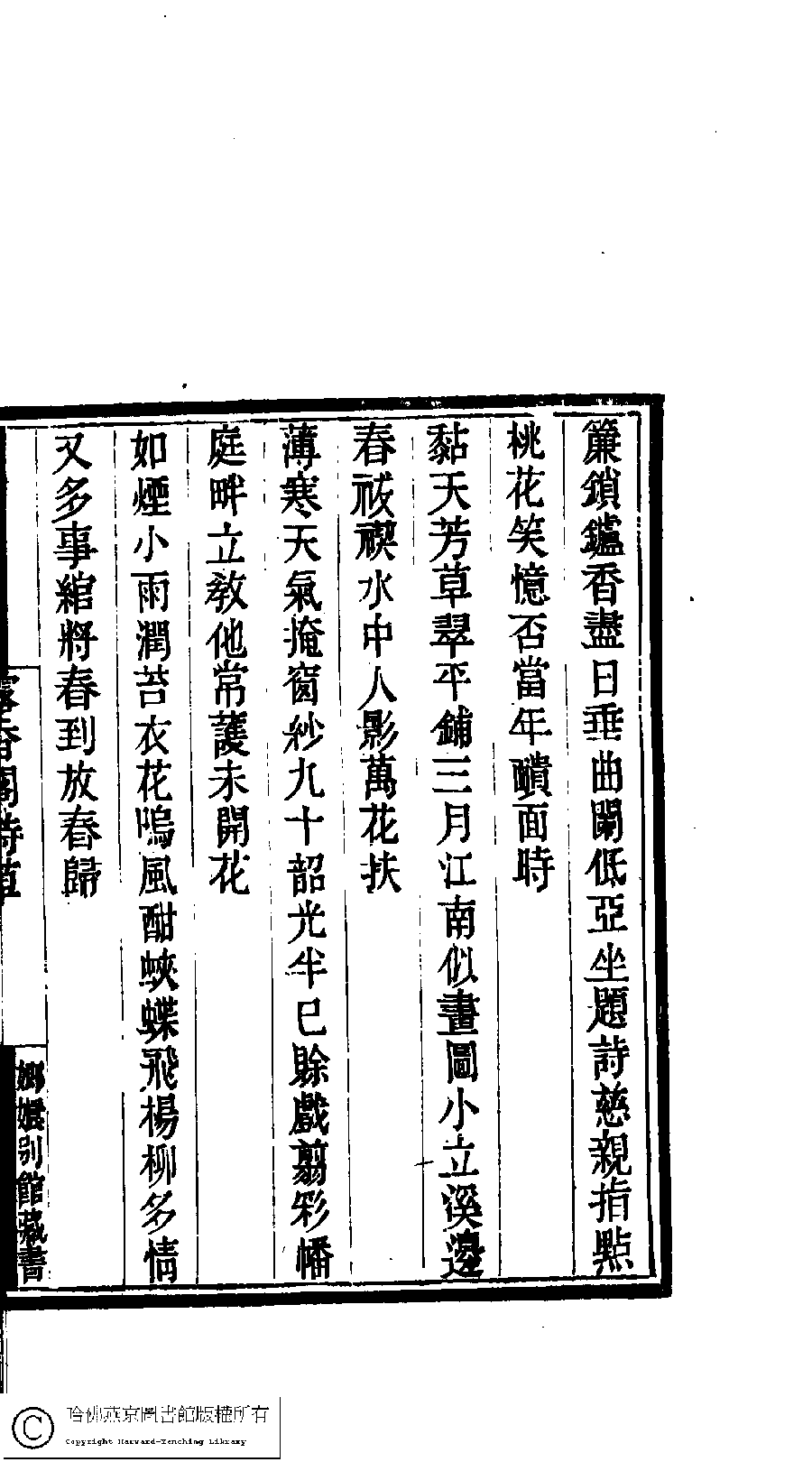 | Appears in: Guo chao gui ge shi chao: 100 zhong 100 juan (edited by Cai Dianqi, Qing dynasty): Lu xiang ge shi cao: 1 juan |