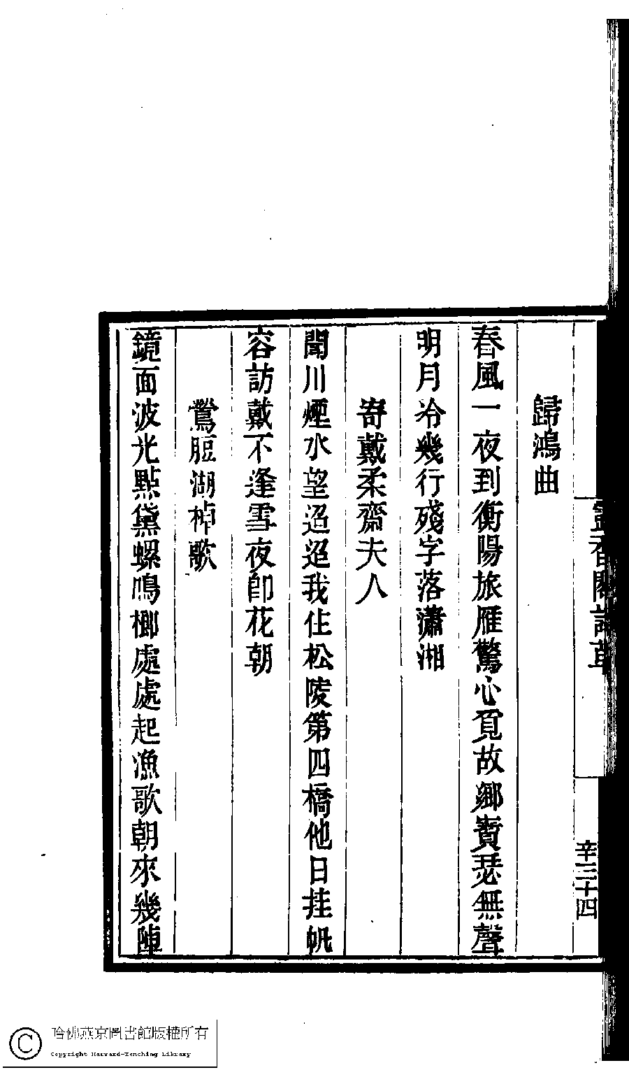 | Appears in: Guo chao gui ge shi chao: 100 zhong 100 juan (edited by Cai Dianqi, Qing dynasty): Lu xiang ge shi cao: 1 juan |