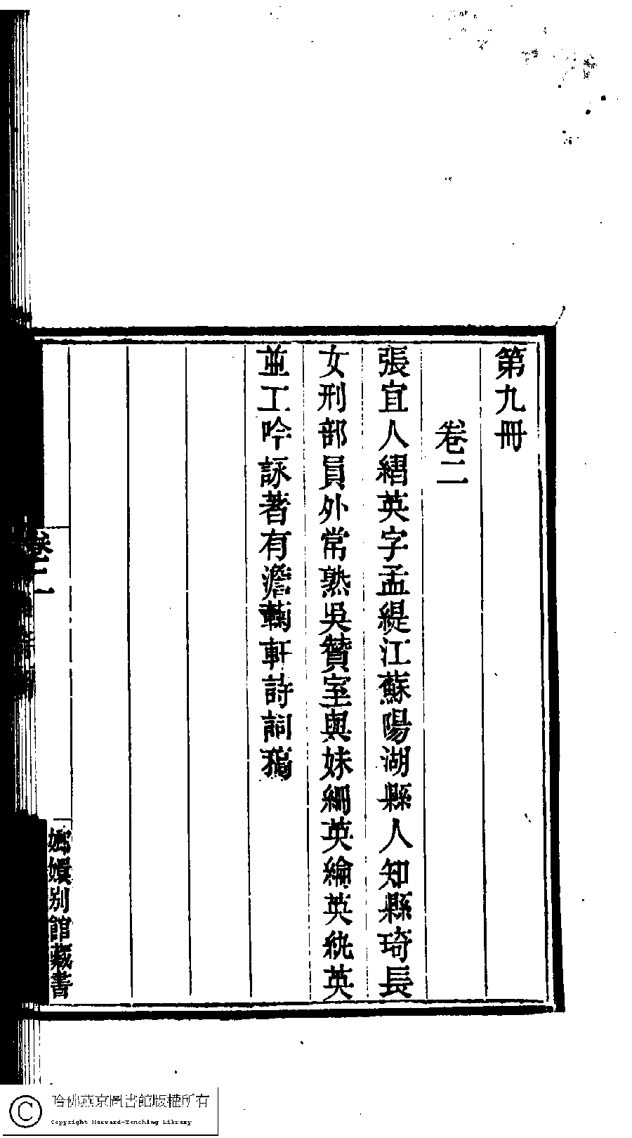| (PRINT FRIENDLY VERSION) 國朝閨閣詩鈔﹕一百種一百卷(清蔡殿齊輯) : 澹蘜軒詩稿﹕一卷。清道光二十四年(1844)刻本。 ![]() Page : 9.6b | click for larger image | 國朝閨閣詩鈔﹕一百種一百卷(清蔡殿齊輯) : 澹蘜軒詩稿﹕一卷。清道光二十四年(1844)刻本。![]() Page : 9.6a | click for larger image | Back |