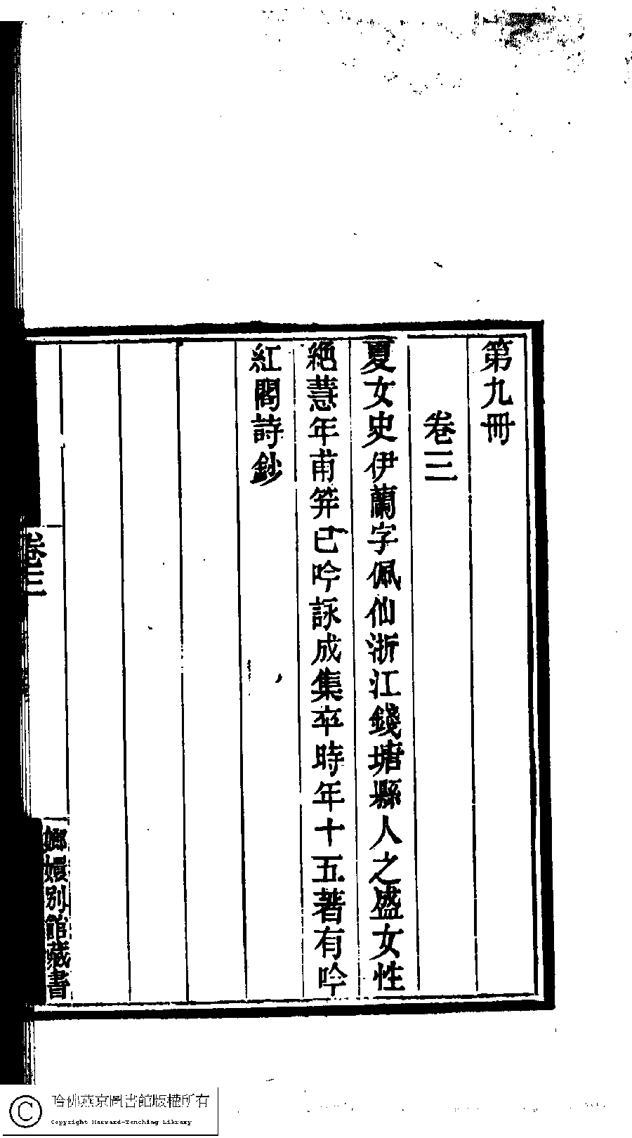 | (PRINT FRIENDLY VERSION) 國朝閨閣詩鈔﹕一百種一百卷(清蔡殿齊輯) : 吟紅閣詩鈔﹕一卷。清道光二十四年(1844)刻本。 ![]() Page : 9.11b | click for larger image | 國朝閨閣詩鈔﹕一百種一百卷(清蔡殿齊輯) : 吟紅閣詩鈔﹕一卷。清道光二十四年(1844)刻本。![]() Page : 9.11a | click for larger image | Back |