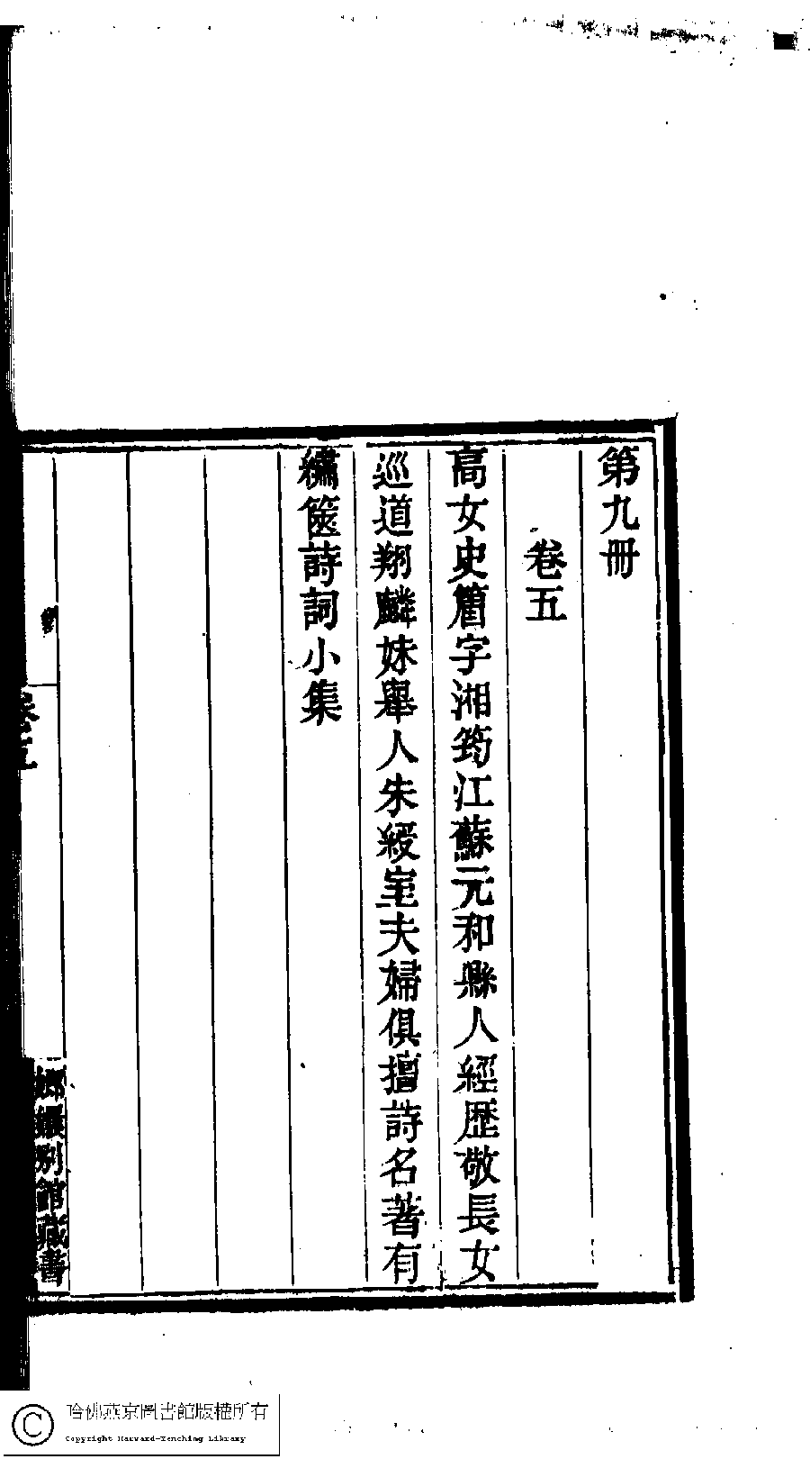 | (PRINT FRIENDLY VERSION) 國朝閨閣詩鈔﹕一百種一百卷(清蔡殿齊輯) : 繡篋小集﹕一卷。清道光二十四年(1844)刻本。 ![]() Page : 9.21b | click for larger image | 國朝閨閣詩鈔﹕一百種一百卷(清蔡殿齊輯) : 繡篋小集﹕一卷。清道光二十四年(1844)刻本。![]() Page : 9.21a | click for larger image | Back |