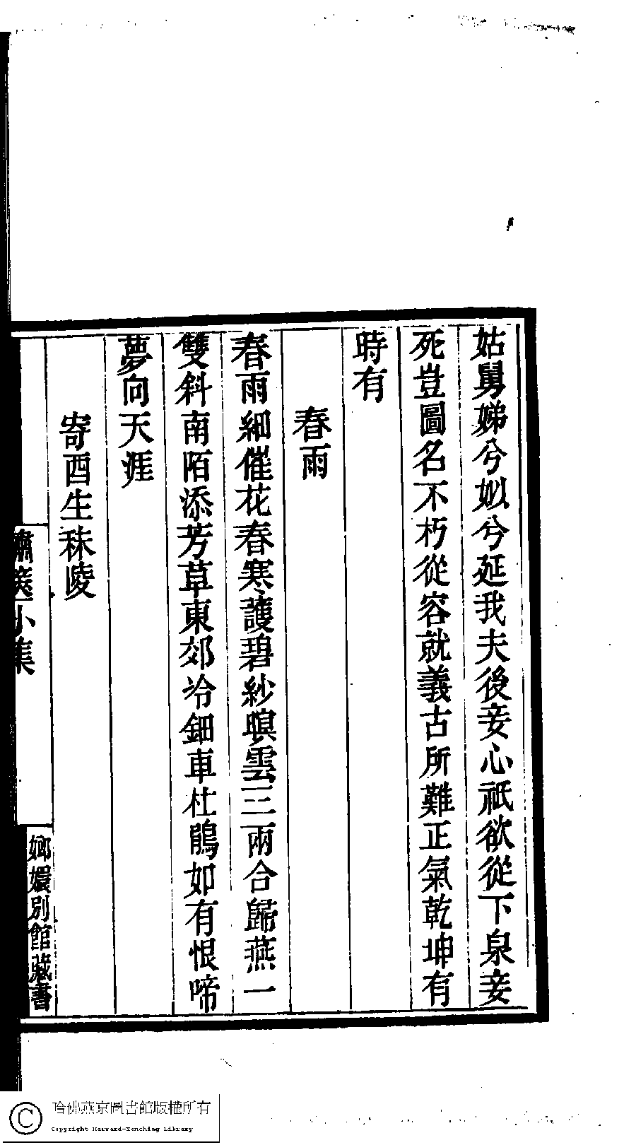 | (PRINT FRIENDLY VERSION) 國朝閨閣詩鈔﹕一百種一百卷(清蔡殿齊輯) : 繡篋小集﹕一卷。清道光二十四年(1844)刻本。 ![]() Page : 9.25b | click for larger image | 國朝閨閣詩鈔﹕一百種一百卷(清蔡殿齊輯) : 繡篋小集﹕一卷。清道光二十四年(1844)刻本。![]() Page : 9.25a | click for larger image | Back |