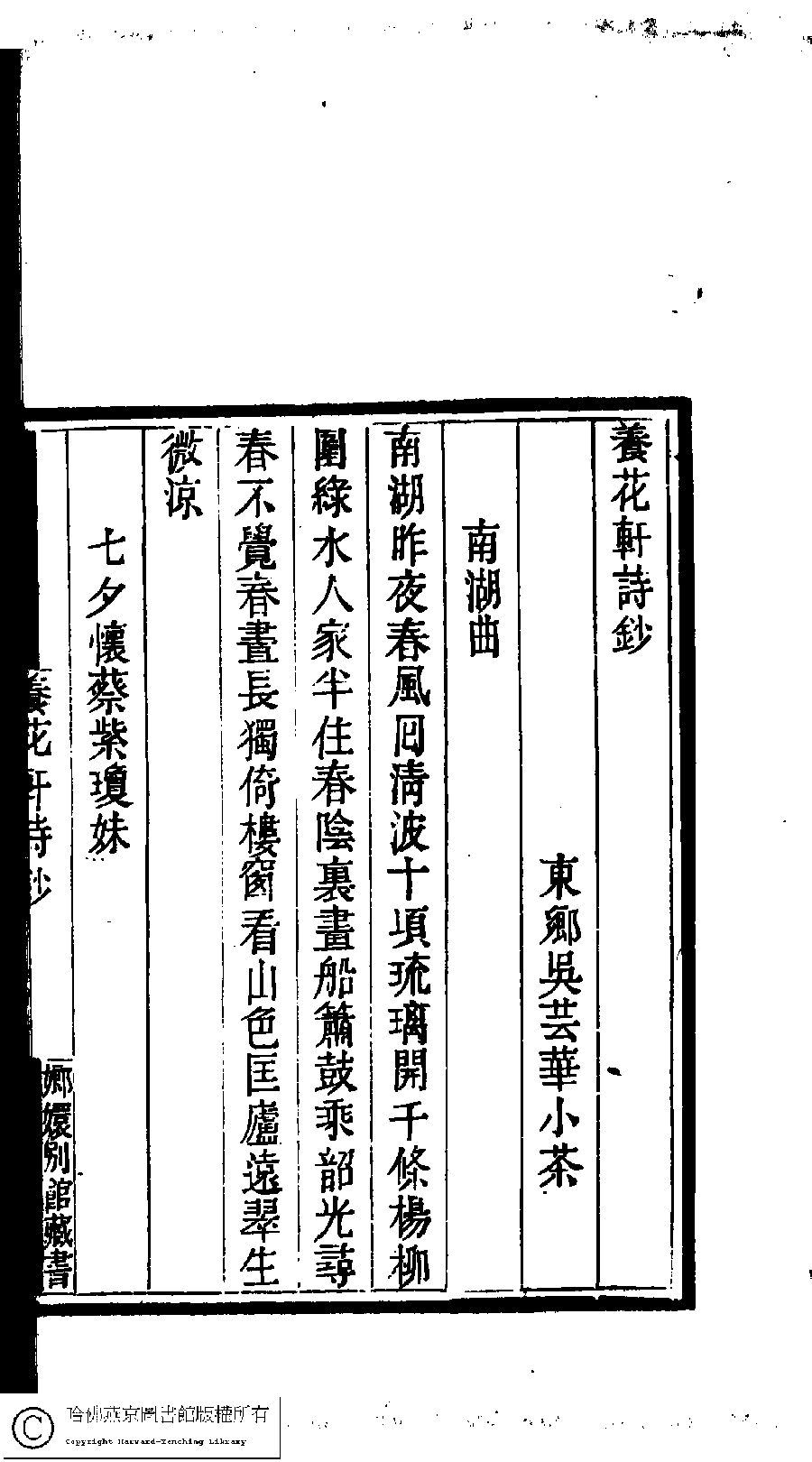 | (PRINT FRIENDLY VERSION) 國朝閨閣詩鈔﹕一百種一百卷(清蔡殿齊輯) : 養花軒詩鈔﹕一卷。清道光二十四年(1844)刻本。 ![]() Page : 9.27b | click for larger image | 國朝閨閣詩鈔﹕一百種一百卷(清蔡殿齊輯) : 養花軒詩鈔﹕一卷。清道光二十四年(1844)刻本。![]() Page : 9.27a | click for larger image | Back |