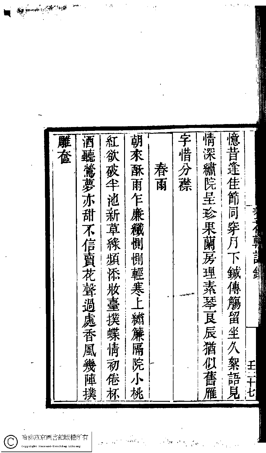 | Appears in: Guo chao gui ge shi chao: 100 zhong 100 juan (edited by Cai Dianqi, Qing dynasty): Yang hua xuan shi chao: 1 juan |