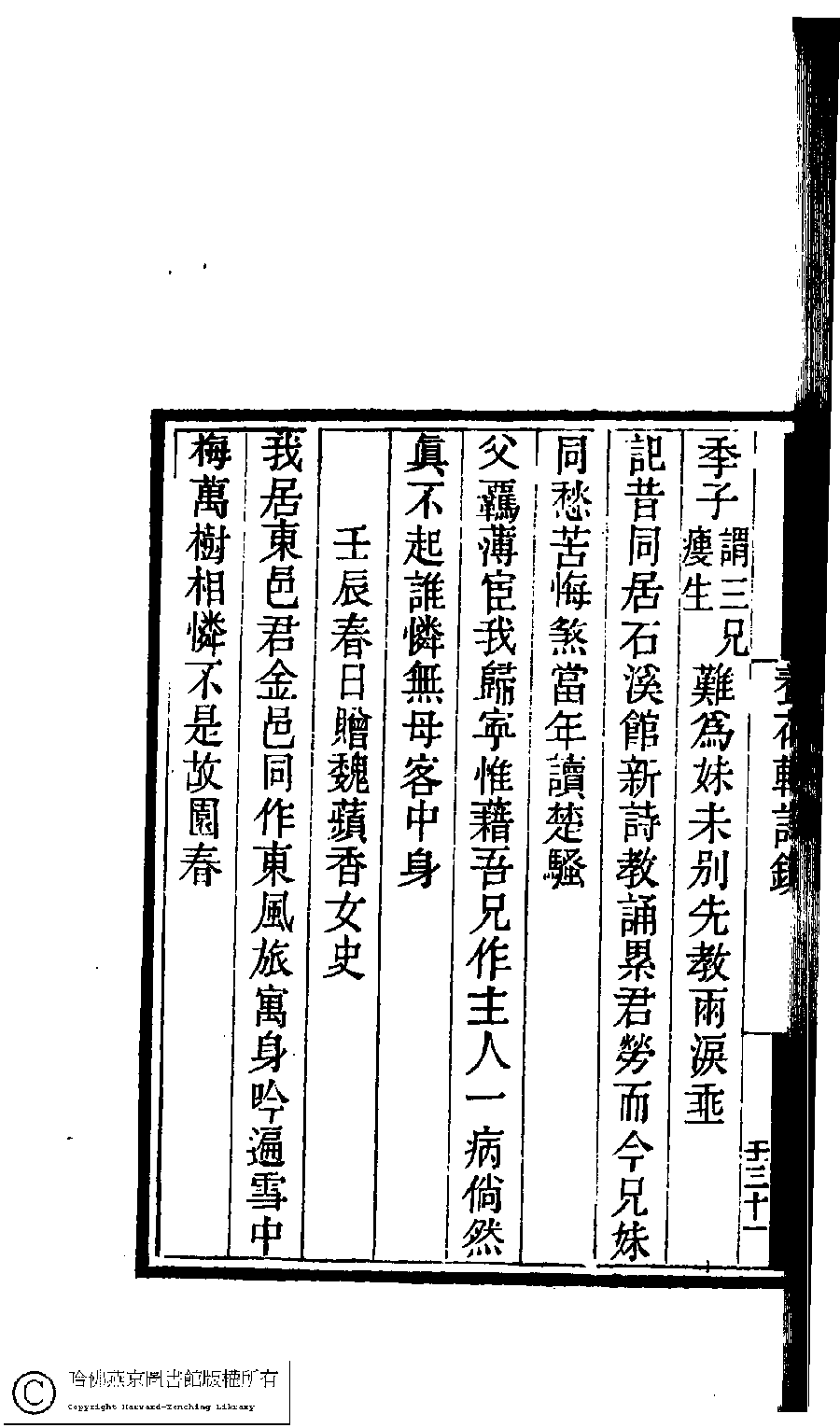 | (PRINT FRIENDLY VERSION) 國朝閨閣詩鈔﹕一百種一百卷(清蔡殿齊輯) : 養花軒詩鈔﹕一卷。清道光二十四年(1844)刻本。 ![]() Page : 9.31b | click for larger image | 國朝閨閣詩鈔﹕一百種一百卷(清蔡殿齊輯) : 養花軒詩鈔﹕一卷。清道光二十四年(1844)刻本。![]() Page : 9.31a | click for larger image | Back |