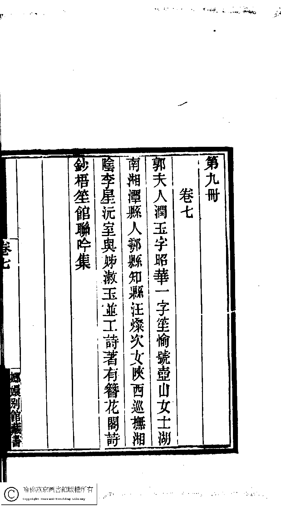 | (PRINT FRIENDLY VERSION) 國朝閨閣詩鈔﹕一百種一百卷(清蔡殿齊輯) : 簪花閣詩鈔﹕一卷。清道光二十四年(1844)刻本。 ![]() Page : 9.33b | click for larger image | 國朝閨閣詩鈔﹕一百種一百卷(清蔡殿齊輯) : 簪花閣詩鈔﹕一卷。清道光二十四年(1844)刻本。![]() Page : 9.33a | click for larger image | Back |