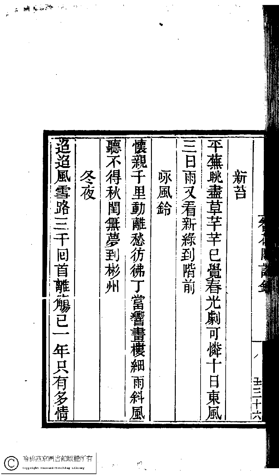 | (PRINT FRIENDLY VERSION) 國朝閨閣詩鈔﹕一百種一百卷(清蔡殿齊輯) : 簪花閣詩鈔﹕一卷。清道光二十四年(1844)刻本。 ![]() Page : 9.36b | click for larger image | Back |