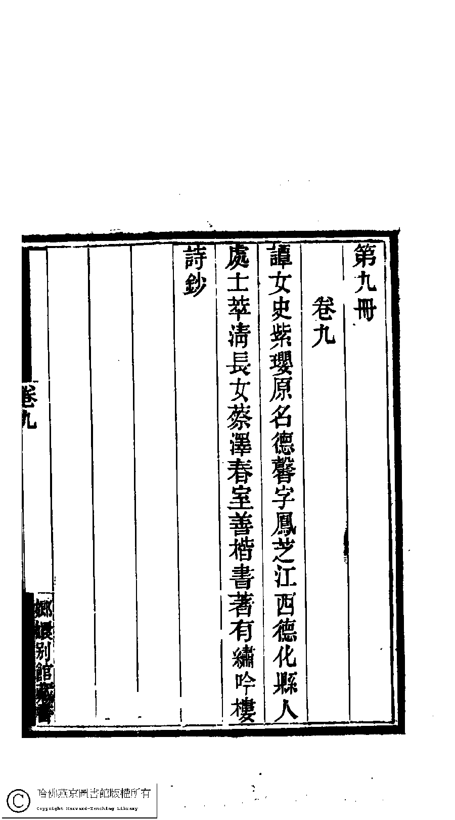 | (PRINT FRIENDLY VERSION) 國朝閨閣詩鈔﹕一百種一百卷(清蔡殿齊輯) : 繡吟樓詩鈔﹕一卷。清道光二十四年(1844)刻本。 ![]() Page : 9.44b | click for larger image | 國朝閨閣詩鈔﹕一百種一百卷(清蔡殿齊輯) : 繡吟樓詩鈔﹕一卷。清道光二十四年(1844)刻本。![]() Page : 9.44a | click for larger image | Back |