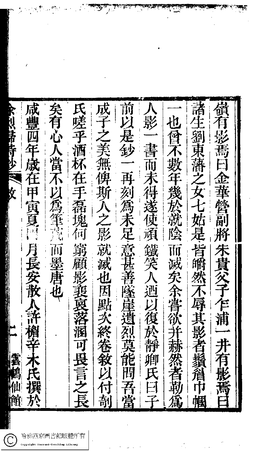 | (PRINT FRIENDLY VERSION) 徐烈婦詩鈔﹕二卷﹐附吳絳雪年譜﹕一卷(清吳宗愛撰)。清光緒元年(1875)雲鶴仙館刻本。 ![]() Page : 序.2b | click for larger image | 徐烈婦詩鈔﹕二卷﹐附吳絳雪年譜﹕一卷(清吳宗愛撰)。清光緒元年(1875)雲鶴仙館刻本。![]() Page : 序.2a | click for larger image | 徐烈婦詩鈔﹕二卷﹐附吳絳雪年譜﹕一卷(清吳宗愛撰)。清光緒元年(1875)雲鶴仙館刻本。![]() Page : 序.1b | click for larger image | 徐烈婦詩鈔﹕二卷﹐附吳絳雪年譜﹕一卷(清吳宗愛撰)。清光緒元年(1875)雲鶴仙館刻本。![]() Page : 序.1a | click for larger image | Back |