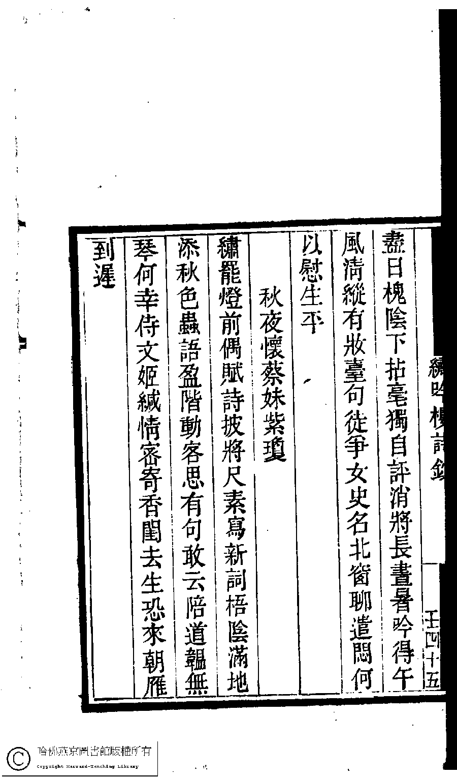 | Appears in: Guo chao gui ge shi chao: 100 zhong 100 juan (edited by Cai Dianqi, Qing dynasty): Xiu yin lou shi chao: 1 juan |