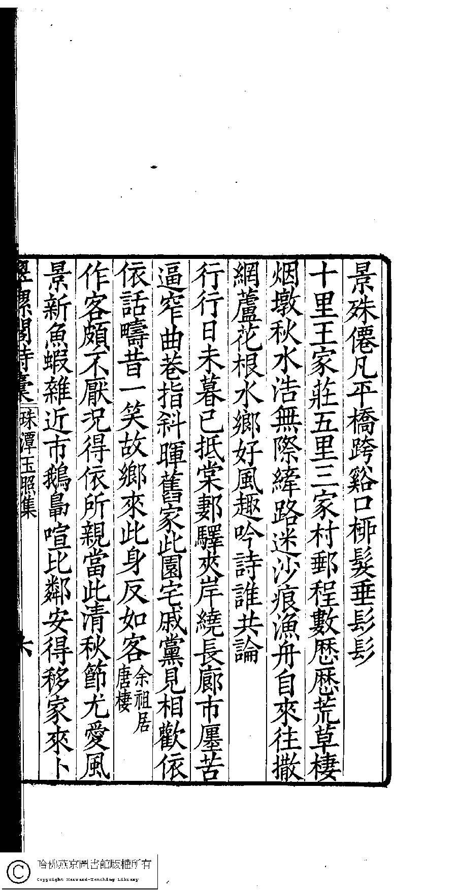 Poem [Qiu ri mai zhao zhi tang qi fang qin shui cheng cun luo feng jing jue jia za shu wu zhang kou xian ge zhi po jue qi sheng qing yue ye]