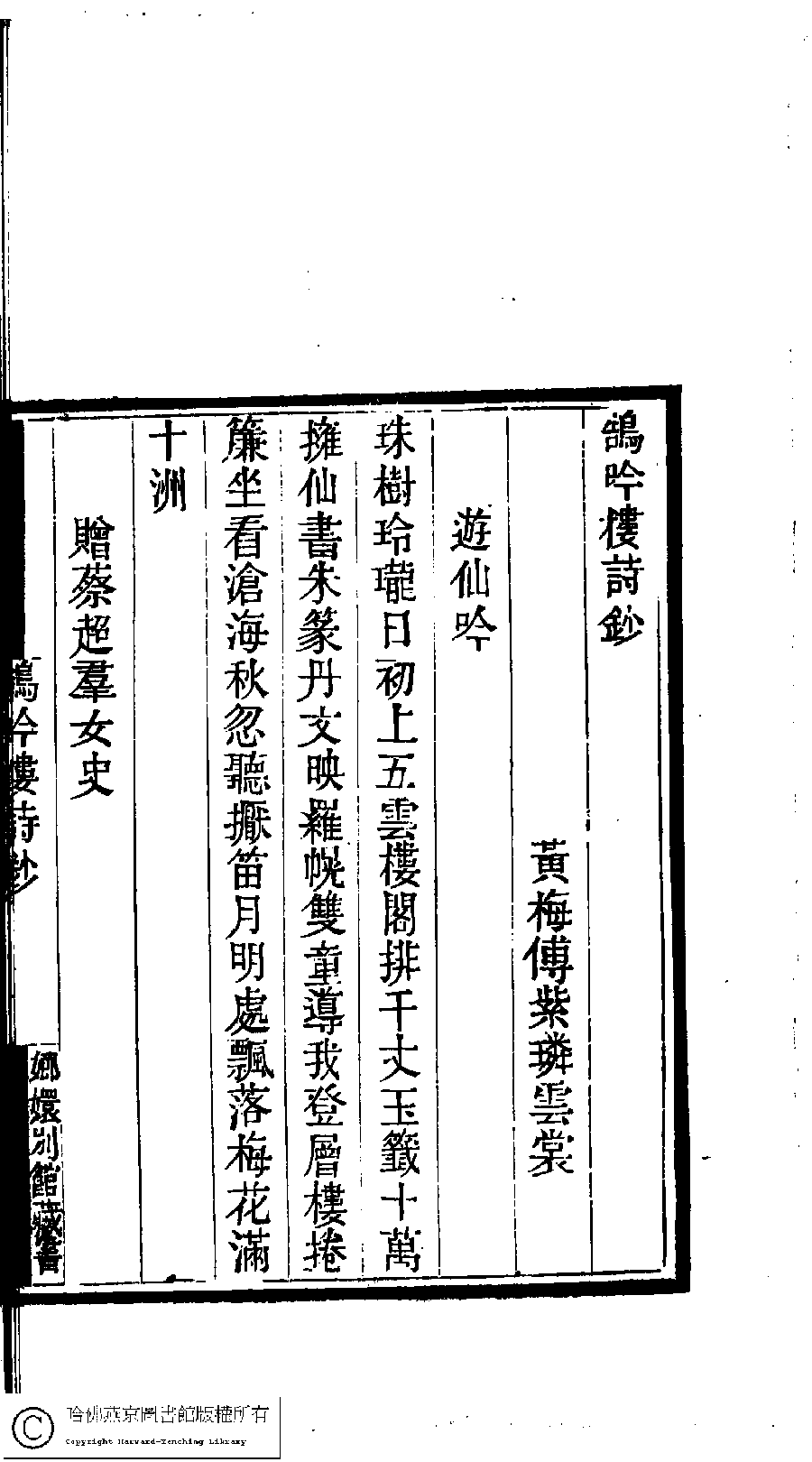 | Appears in: Guo chao gui ge shi chao: 100 zhong 100 juan (edited by Cai Dianqi, Qing dynasty): Hu yin lou shi chao: 1 juan |
