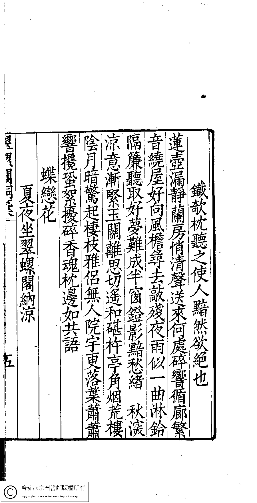 | (PRINT FRIENDLY VERSION) 翠螺閣詩詞稾﹕五卷﹐附舞鏡集﹕一卷(清凌祉媛撰)。清咸豐四年(1854)刻本。 ![]() Page : 詞稿.5b | click for larger image | 翠螺閣詩詞稾﹕五卷﹐附舞鏡集﹕一卷(清凌祉媛撰)。清咸豐四年(1854)刻本。![]() Page : 詞稿.5a | click for larger image | Back |
