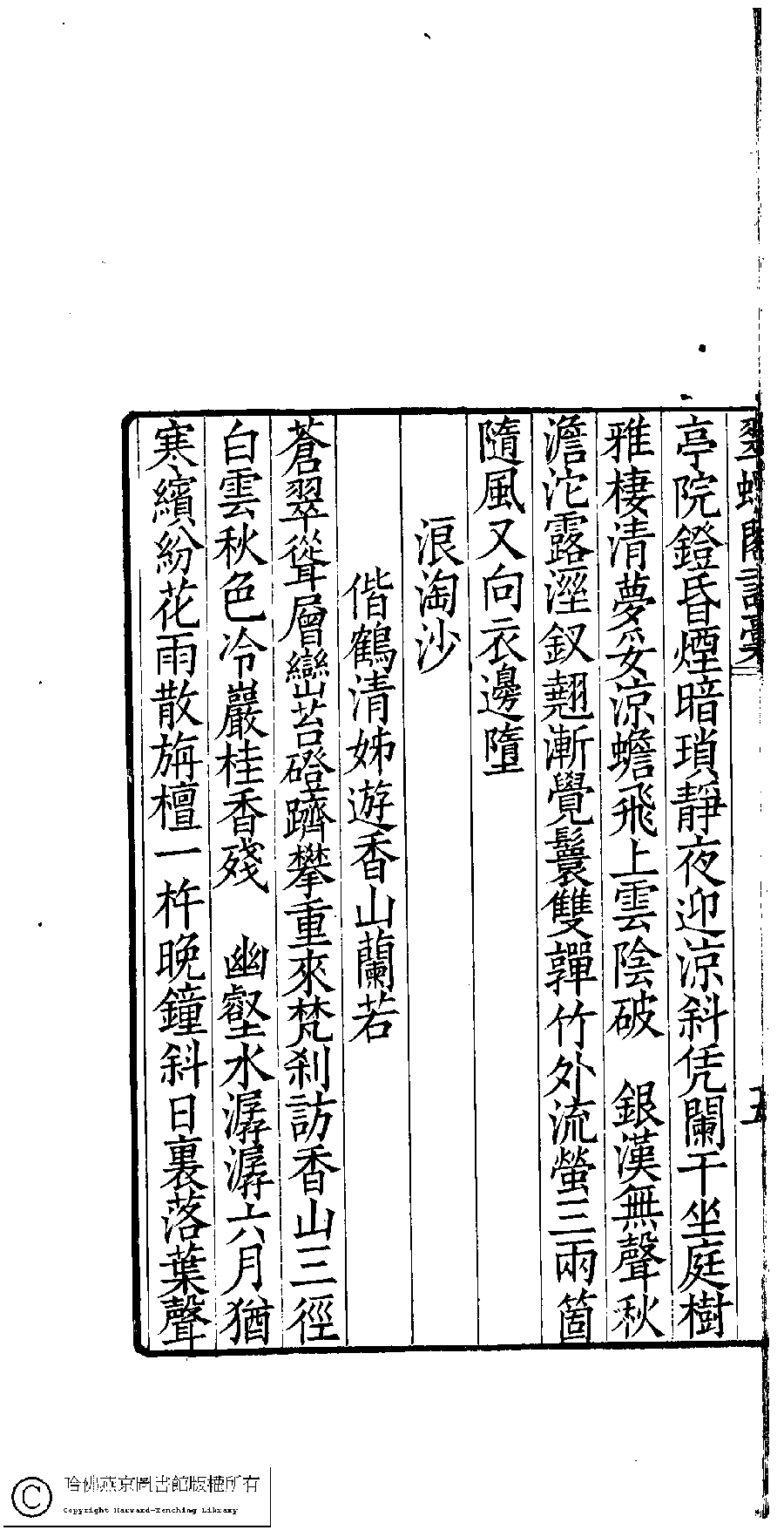 | Appears in: Cui luo ge shi ci gao: 5 juan, fu wu jing ji: 1 juan (by Ling Zhiyuan, Qing dynasty) |
