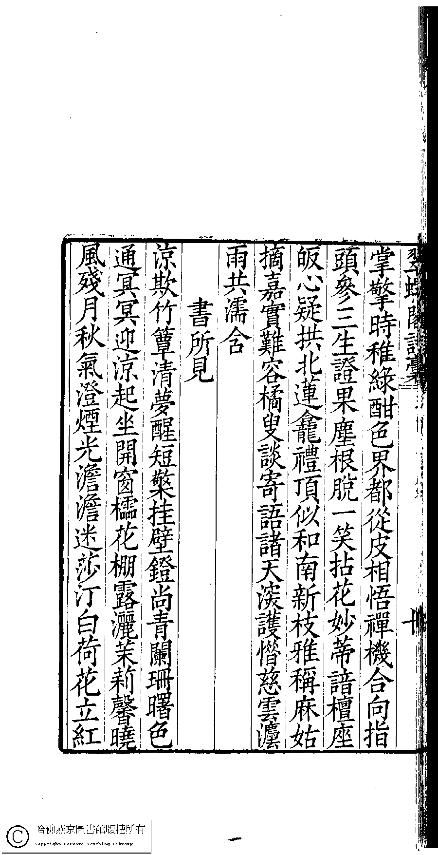 | (PRINT FRIENDLY VERSION) 翠螺閣詩詞稾﹕五卷﹐附舞鏡集﹕一卷(清凌祉媛撰)。清咸豐四年(1854)刻本。 ![]() Page : 詩稿.3.10b | click for larger image | 翠螺閣詩詞稾﹕五卷﹐附舞鏡集﹕一卷(清凌祉媛撰)。清咸豐四年(1854)刻本。![]() Page : 詩稿.3.10a | click for larger image | Back |