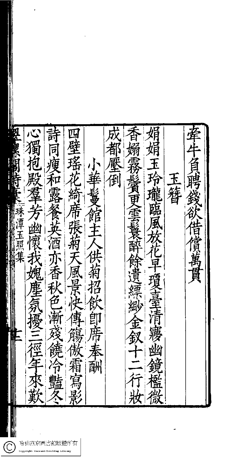 | Appears in: Cui luo ge shi ci gao: 5 juan, fu wu jing ji: 1 juan (by Ling Zhiyuan, Qing dynasty) |