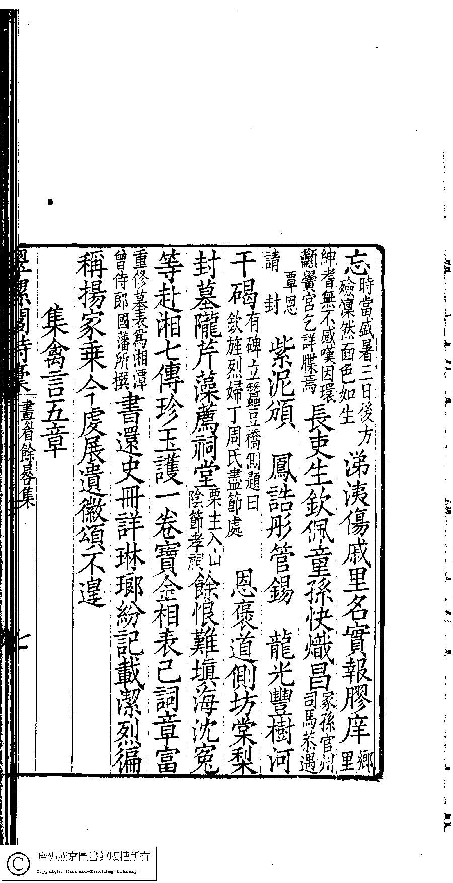 | (PRINT FRIENDLY VERSION) 翠螺閣詩詞稾﹕五卷﹐附舞鏡集﹕一卷(清凌祉媛撰)。清咸豐四年(1854)刻本。 ![]() Page : 詩稿.4.7a | click for larger image | 翠螺閣詩詞稾﹕五卷﹐附舞鏡集﹕一卷(清凌祉媛撰)。清咸豐四年(1854)刻本。![]() Page : 詩稿.4.6b | click for larger image | 翠螺閣詩詞稾﹕五卷﹐附舞鏡集﹕一卷(清凌祉媛撰)。清咸豐四年(1854)刻本。![]() Page : 詩稿.4.6a | click for larger image | Back |
