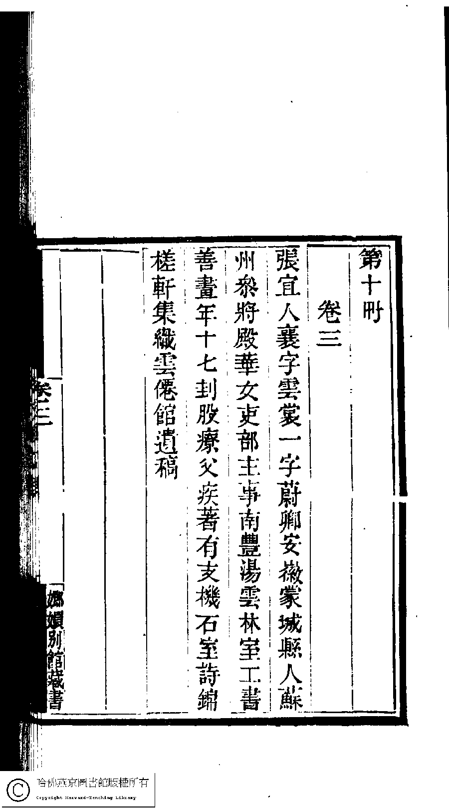 | (PRINT FRIENDLY VERSION) 國朝閨閣詩鈔﹕一百種一百卷(清蔡殿齊輯) : 錦槎軒詩稿﹕一卷。清道光二十四年(1844)刻本。 ![]() Page : 10.11b | click for larger image | 國朝閨閣詩鈔﹕一百種一百卷(清蔡殿齊輯) : 錦槎軒詩稿﹕一卷。清道光二十四年(1844)刻本。![]() Page : 10.11a | click for larger image | Back |
