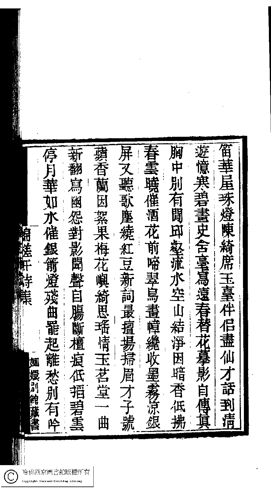 | (PRINT FRIENDLY VERSION) 國朝閨閣詩鈔﹕一百種一百卷(清蔡殿齊輯) : 錦槎軒詩稿﹕一卷。清道光二十四年(1844)刻本。 ![]() Page : 10.13b | click for larger image | 國朝閨閣詩鈔﹕一百種一百卷(清蔡殿齊輯) : 錦槎軒詩稿﹕一卷。清道光二十四年(1844)刻本。![]() Page : 10.13a | click for larger image | 國朝閨閣詩鈔﹕一百種一百卷(清蔡殿齊輯) : 錦槎軒詩稿﹕一卷。清道光二十四年(1844)刻本。![]() Page : 10.12b | click for larger image | Back |