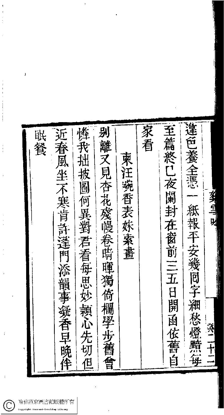 | (PRINT FRIENDLY VERSION) 國朝閨閣詩鈔﹕一百種一百卷(清蔡殿齊輯) : 絮雪吟﹕一卷。清道光二十四年(1844)刻本。 ![]() Page : 10.22b | click for larger image | 國朝閨閣詩鈔﹕一百種一百卷(清蔡殿齊輯) : 絮雪吟﹕一卷。清道光二十四年(1844)刻本。![]() Page : 10.22a | click for larger image | Back |