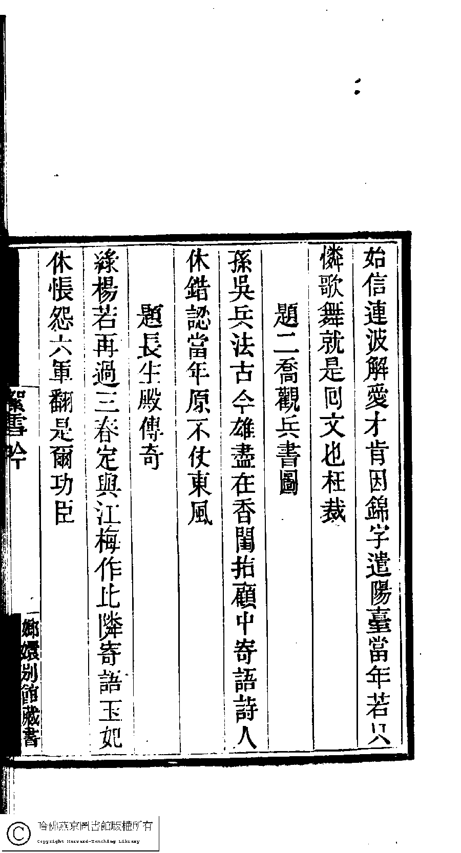 | (PRINT FRIENDLY VERSION) 國朝閨閣詩鈔﹕一百種一百卷(清蔡殿齊輯) : 絮雪吟﹕一卷。清道光二十四年(1844)刻本。 ![]() Page : 10.24a | click for larger image | Back |