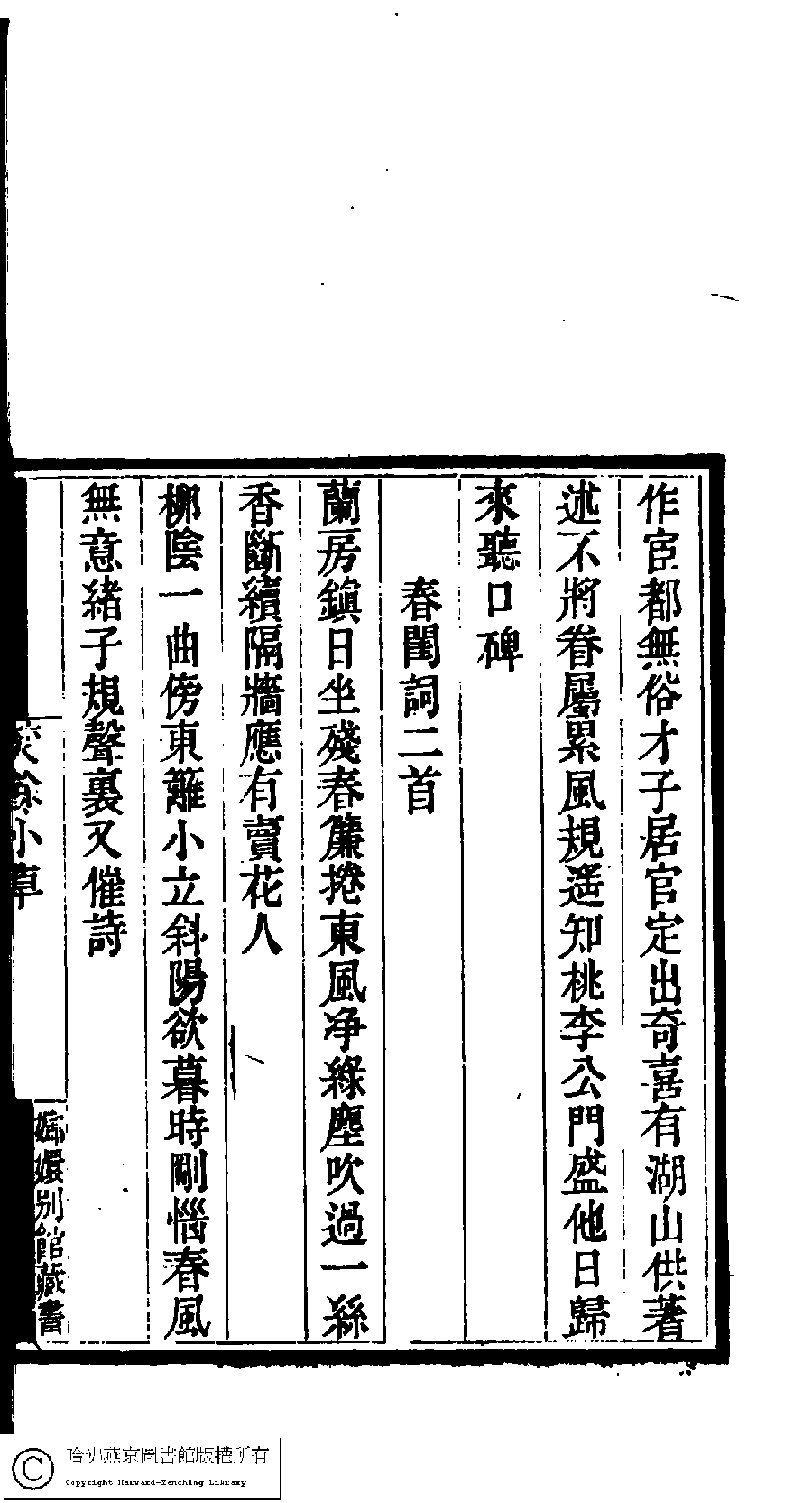| (PRINT FRIENDLY VERSION) 國朝閨閣詩鈔﹕一百種一百卷(清蔡殿齊輯) : 焚餘小草﹕一卷。清道光二十四年(1844)刻本。 ![]() Page : 10.36a | click for larger image | 國朝閨閣詩鈔﹕一百種一百卷(清蔡殿齊輯) : 焚餘小草﹕一卷。清道光二十四年(1844)刻本。![]() Page : 10.35b | click for larger image | Back |