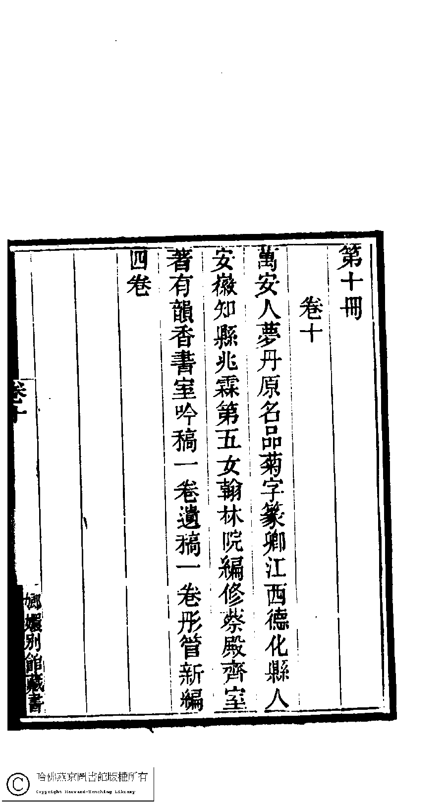 | (PRINT FRIENDLY VERSION) 國朝閨閣詩鈔﹕一百種一百卷(清蔡殿齊輯) : 韻香書室吟稿﹕一卷。清道光二十四年(1844)刻本。 ![]() Page : 10.63b | click for larger image | 國朝閨閣詩鈔﹕一百種一百卷(清蔡殿齊輯) : 韻香書室吟稿﹕一卷。清道光二十四年(1844)刻本。![]() Page : 10.63a | click for larger image | Back |