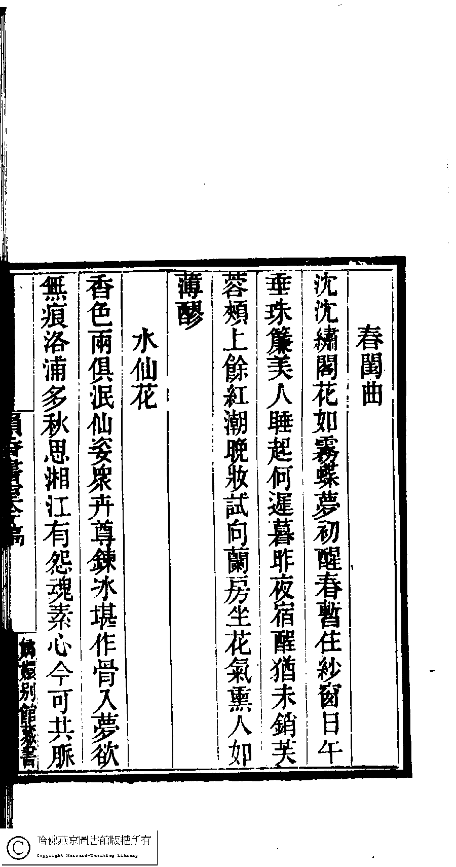 | (PRINT FRIENDLY VERSION) 國朝閨閣詩鈔﹕一百種一百卷(清蔡殿齊輯) : 韻香書室吟稿﹕一卷。清道光二十四年(1844)刻本。 ![]() Page : 10.66b | click for larger image | 國朝閨閣詩鈔﹕一百種一百卷(清蔡殿齊輯) : 韻香書室吟稿﹕一卷。清道光二十四年(1844)刻本。![]() Page : 10.66a | click for larger image | Back |