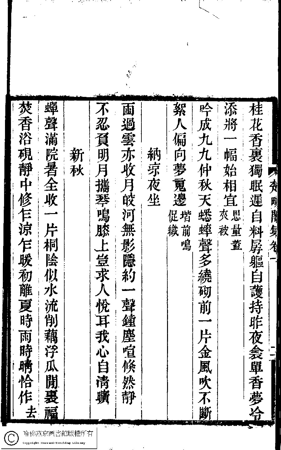 | (PRINT FRIENDLY VERSION) 楚畹閣集﹕十二卷(清季蘭韻撰)。清道光二十七年(1847)刻本 ![]() Page : 1.2b | click for larger image | Back |