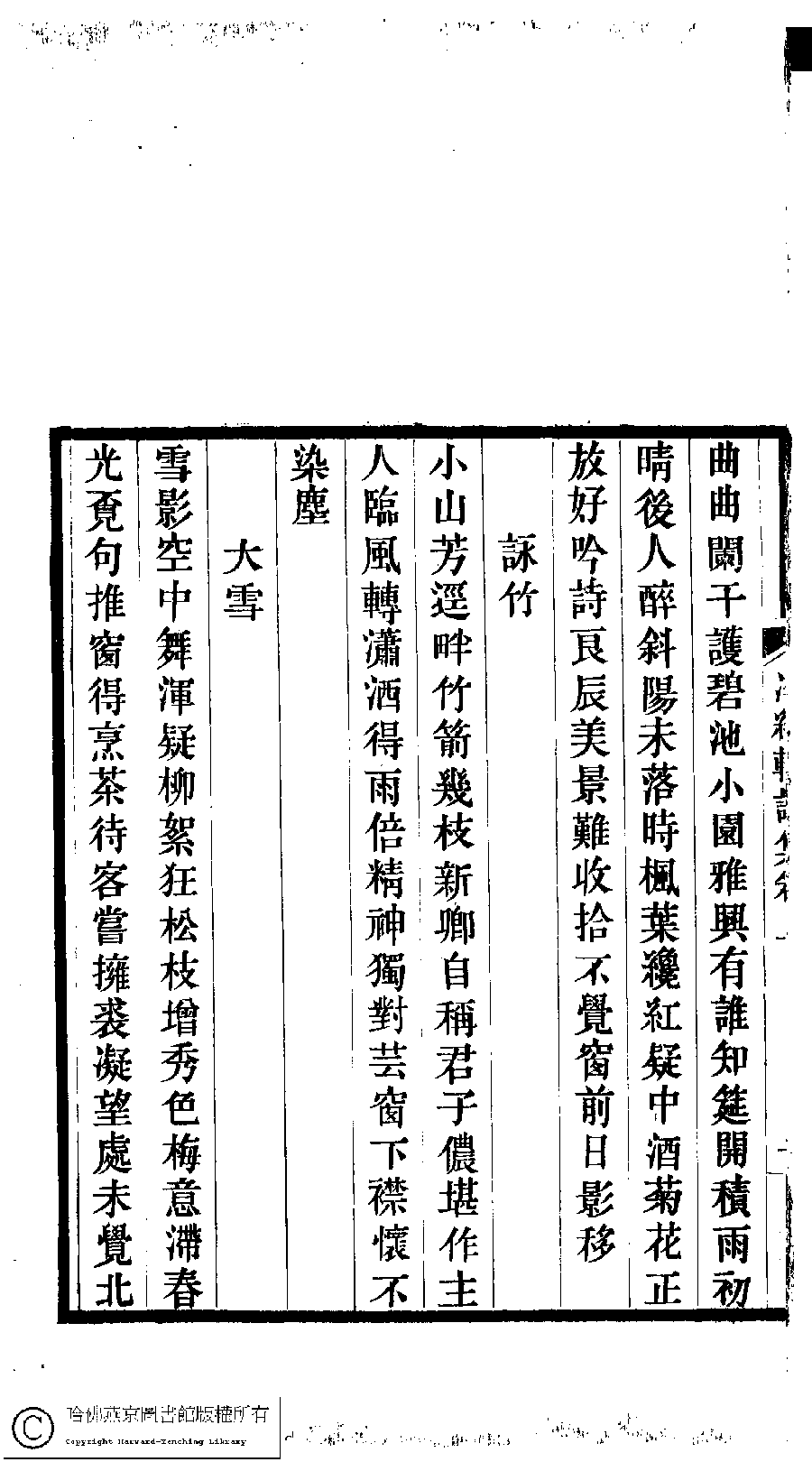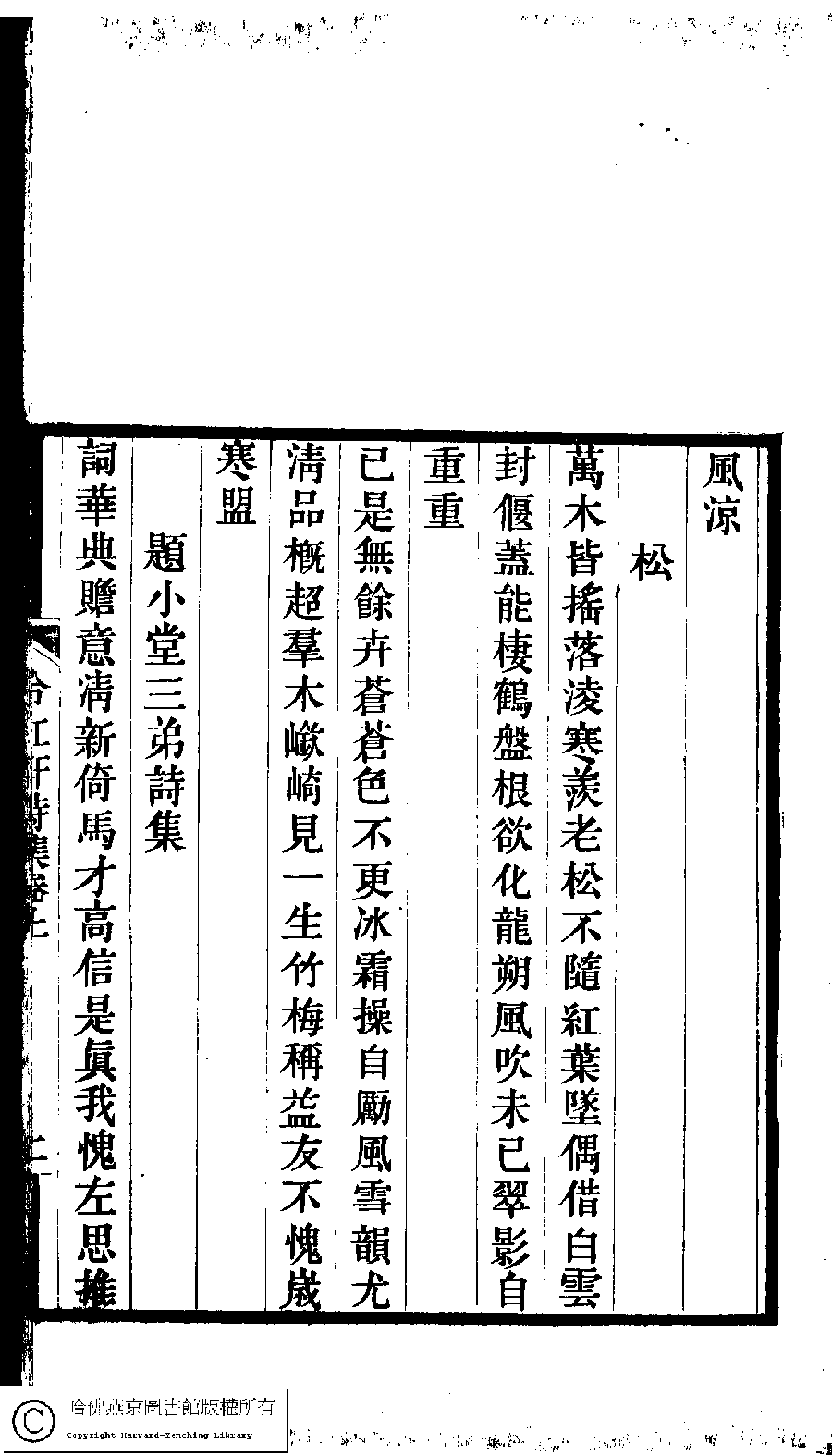 | (PRINT FRIENDLY VERSION) 冷紅軒詩集﹕二卷﹐附詞(清百保友蘭撰)。清光緒元年(1875)刻本。 ![]() Page : 上.2a | click for larger image | 冷紅軒詩集﹕二卷﹐附詞(清百保友蘭撰)。清光緒元年(1875)刻本。![]() Page : 上.1b | click for larger image | Back |